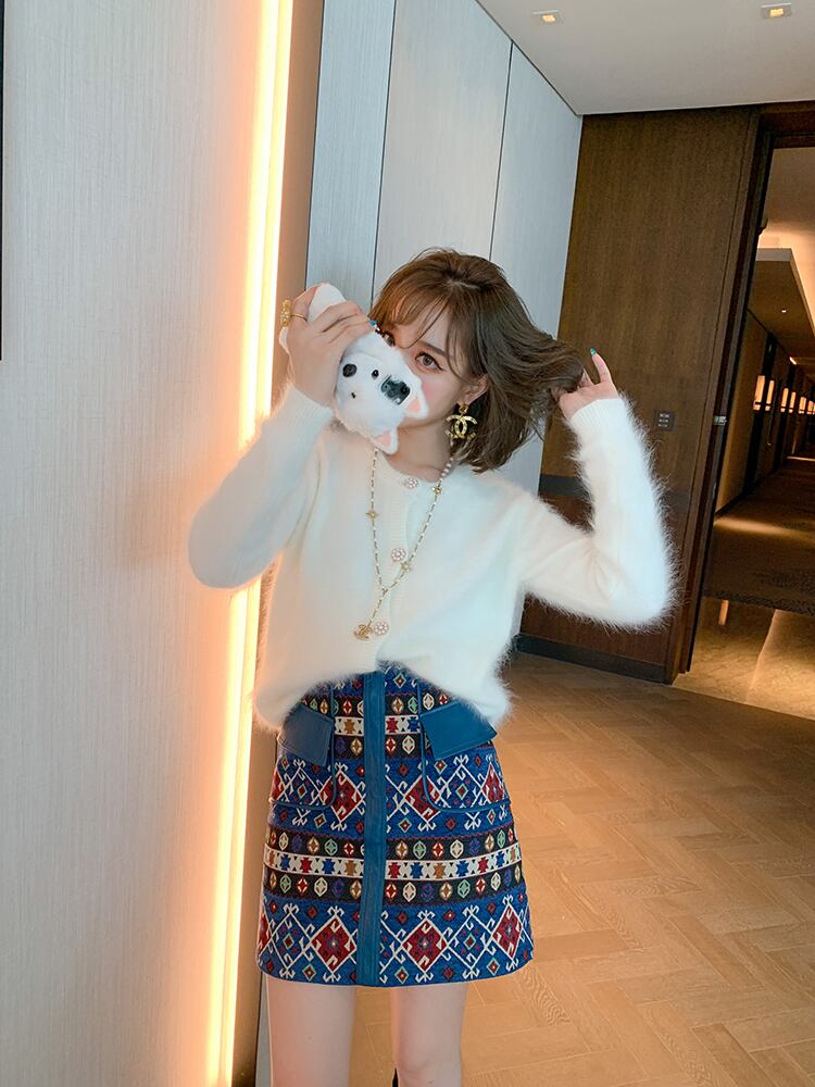 ラウンドネックルーズソリッド カラーセーター ボタンニットカーディガンウィンター 冬物 Oネック ソリッドカラー MIUCO99765379580