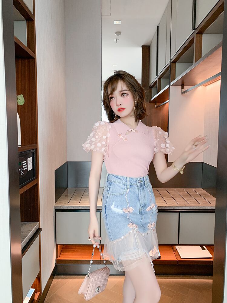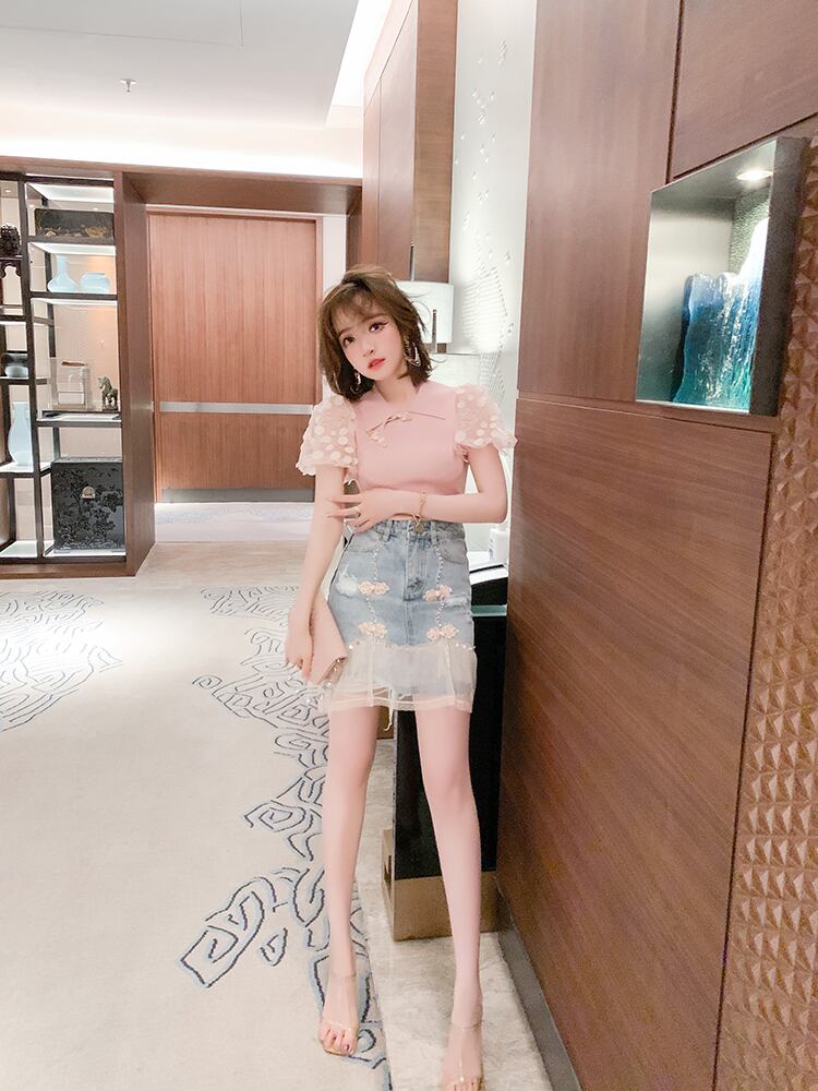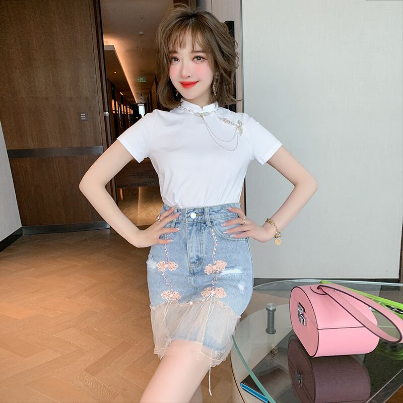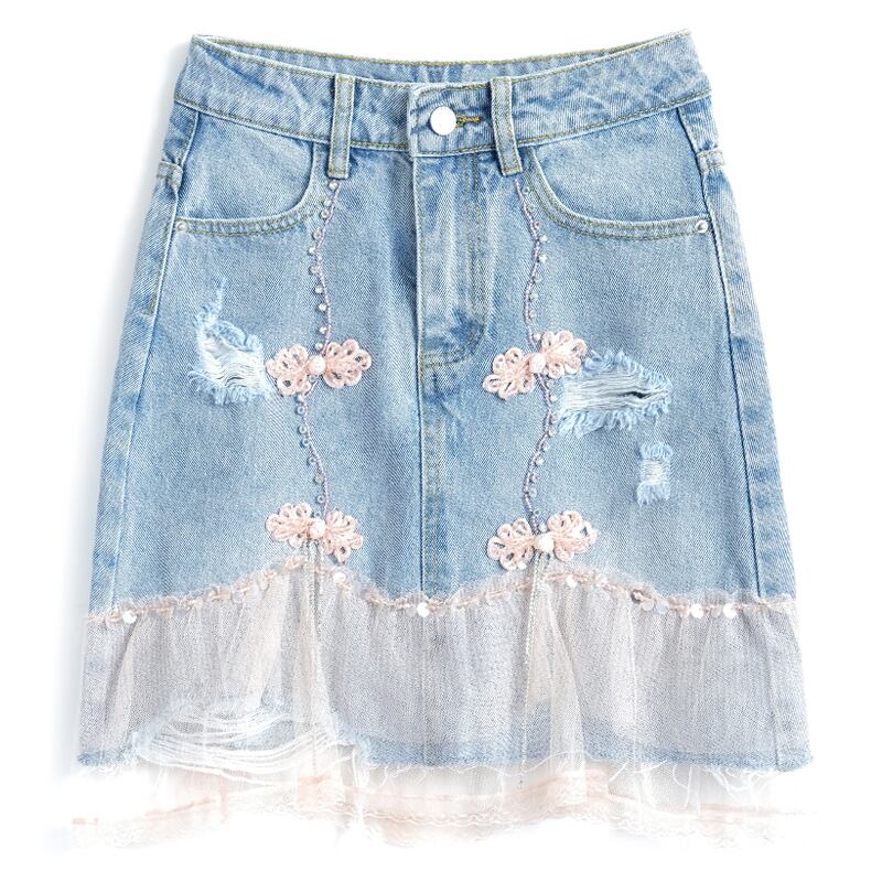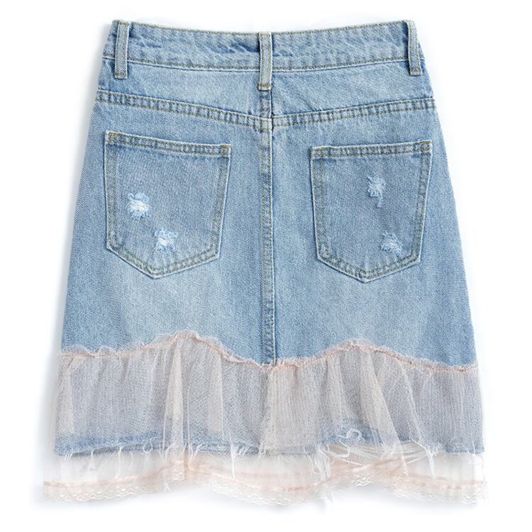 ハイウェストウェストスタンダードボタンメッシュスカート サマースタイル レトロ 夏物 ステッチ MIUCO18403120205