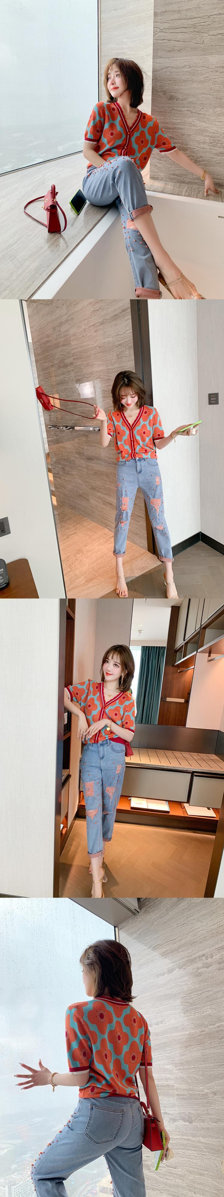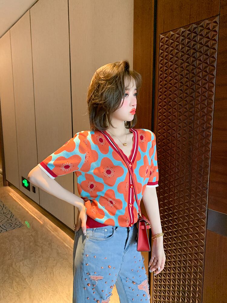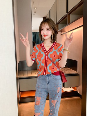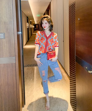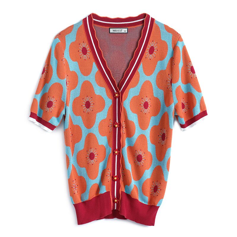 レースVネックフローラルジャカードニット半袖スリーブカーディガンTシャツ サマー ショート ハーフスリーブ 大人ガーリー スウィート キュート カジュアル 夏物 花柄 MIUCO27189444689