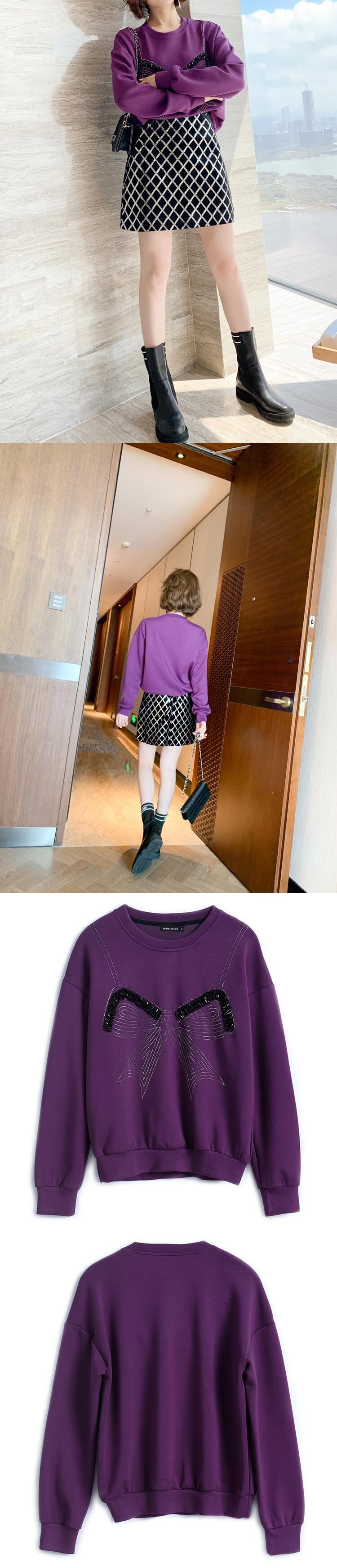 スタイルビーズ リボンパターンルーズセーター スプリング 春物 MIUCO6668739999