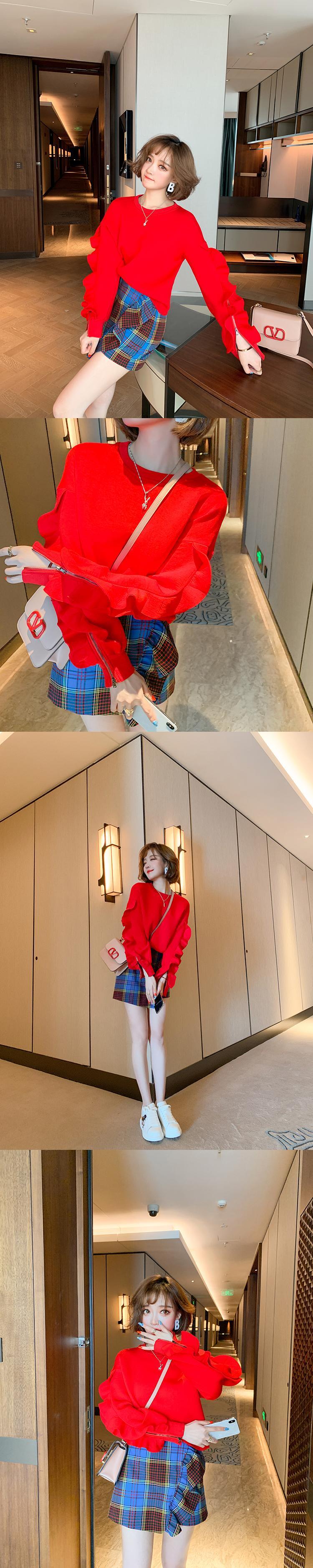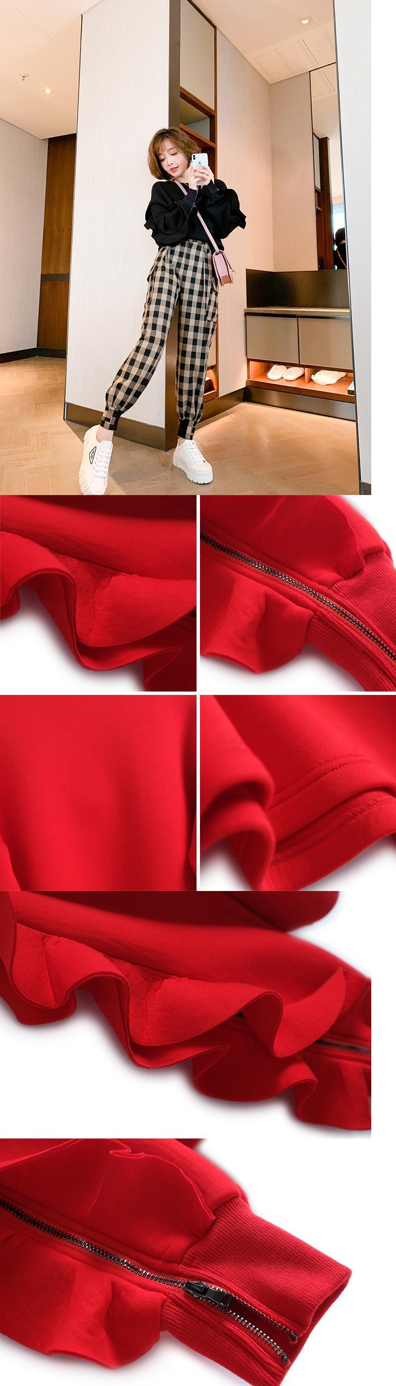レースジッパースリーブソリッド カラーセーター オータム コットン 秋物 ソリッドカラー ステッチ MIUCO59178982599
