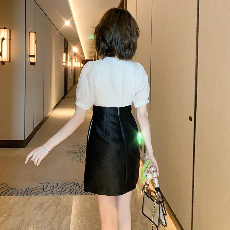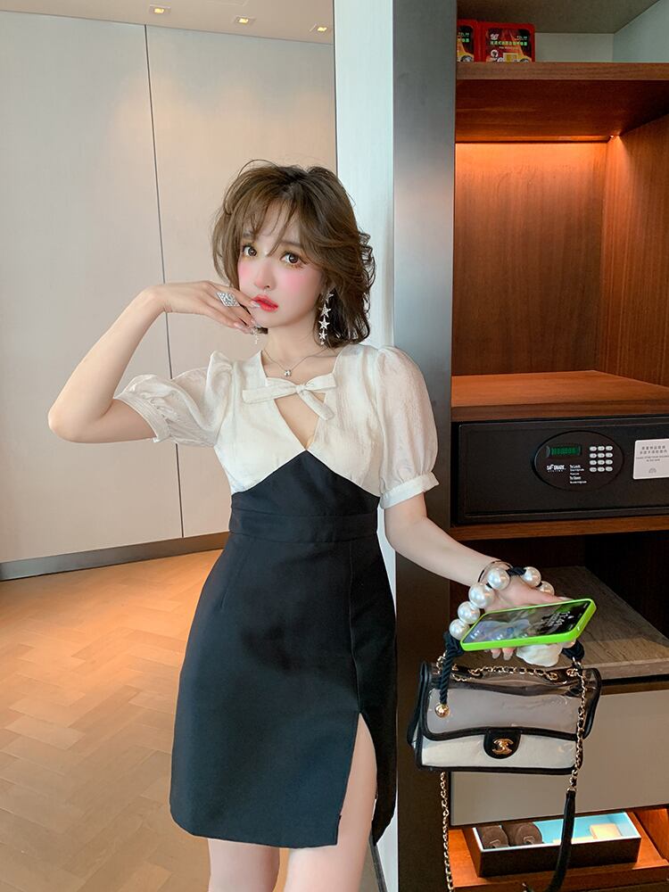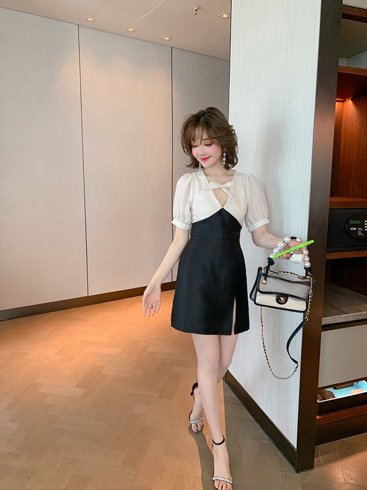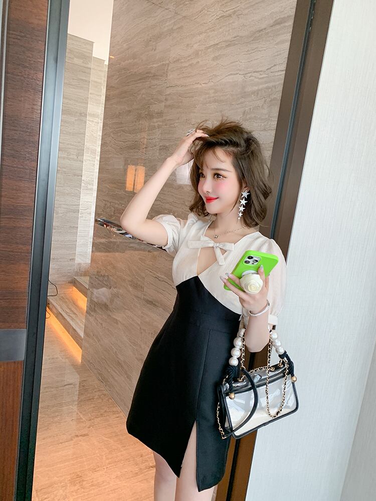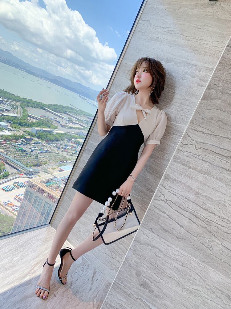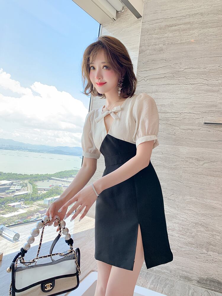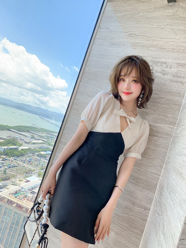 ハイウェストウェストスリムドレス サマー リボン 夏物 ステッチ MIUCO8058260733