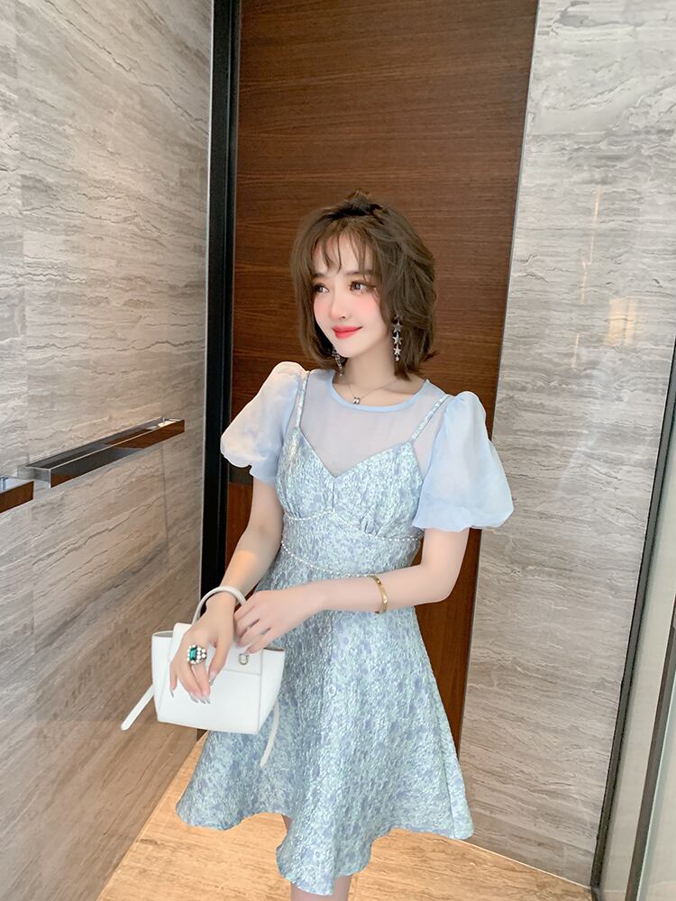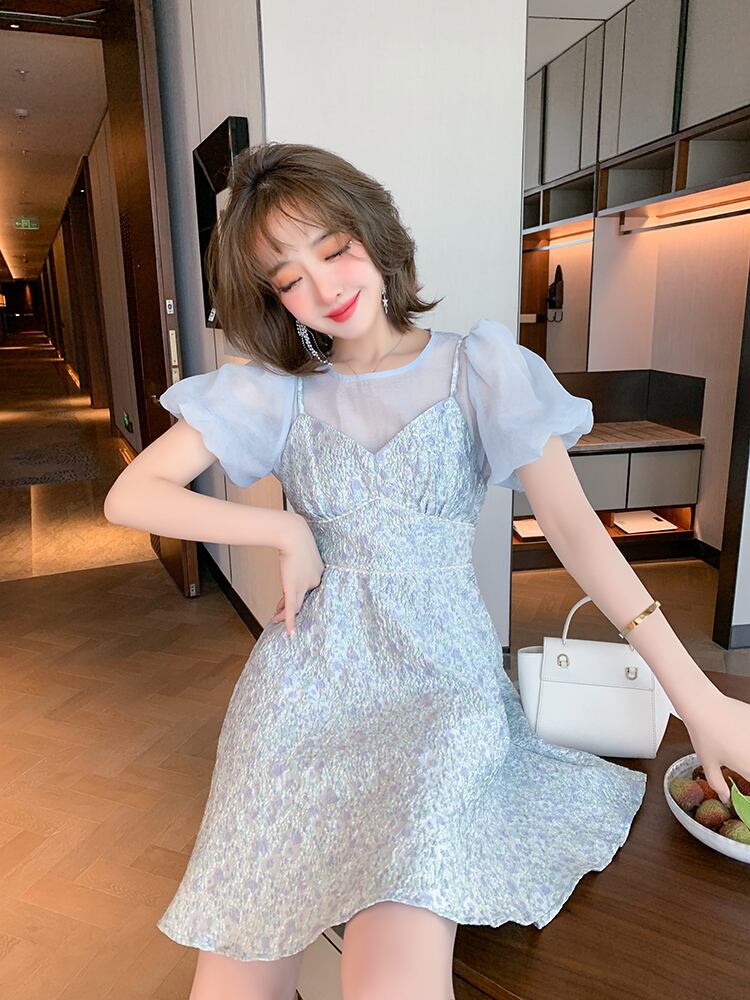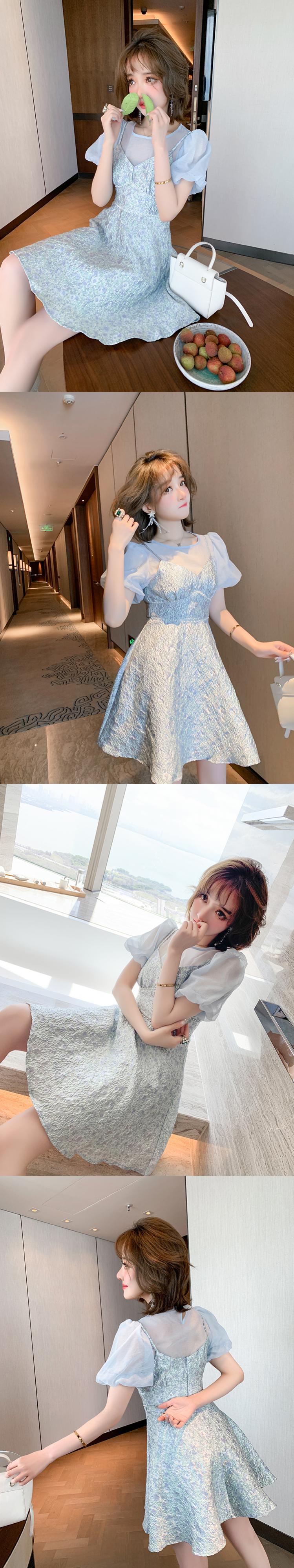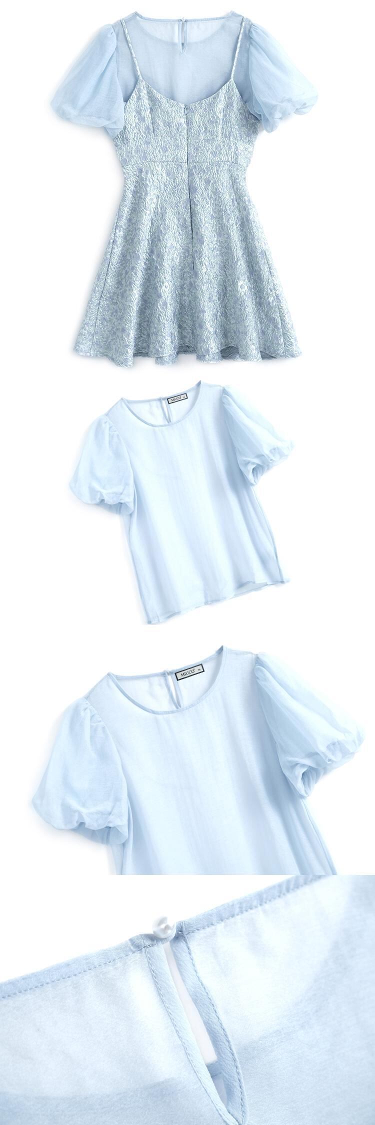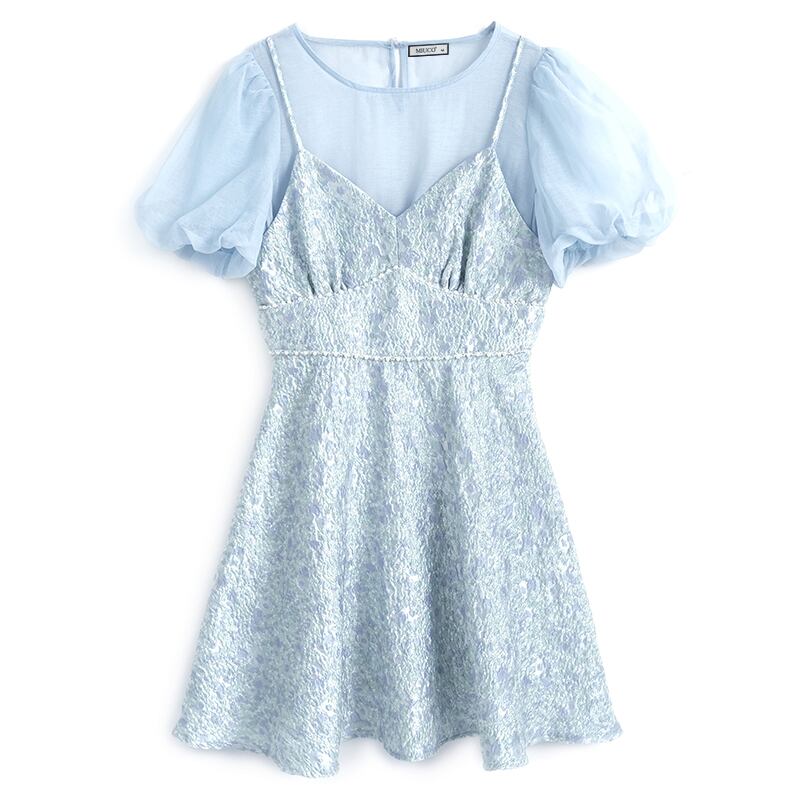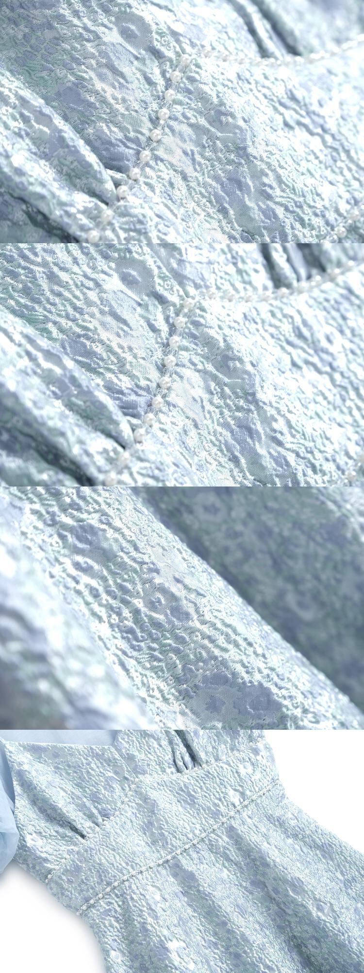 スリーブラウンドネックトップス プリーツジャカードドレス サマー 大人ガーリー スウィート キュート カジュアル 夏物 Oネック MIUCO98851970567