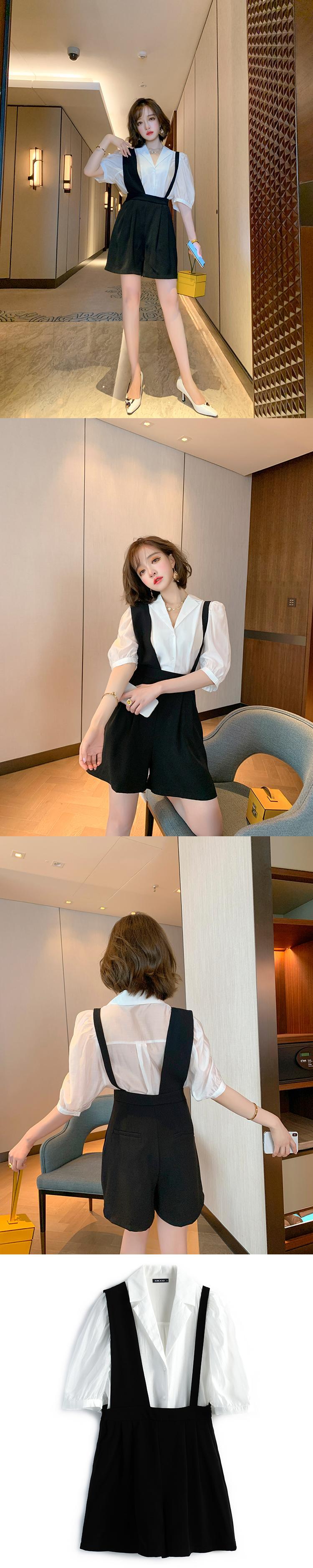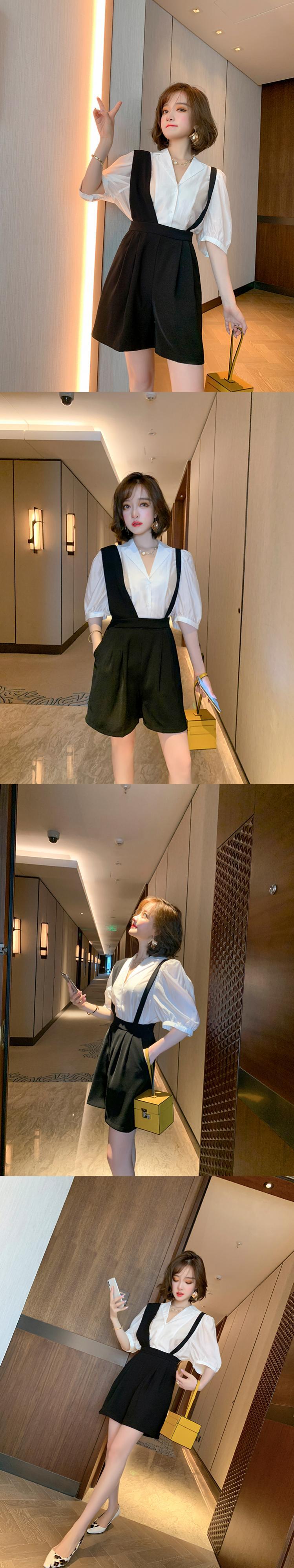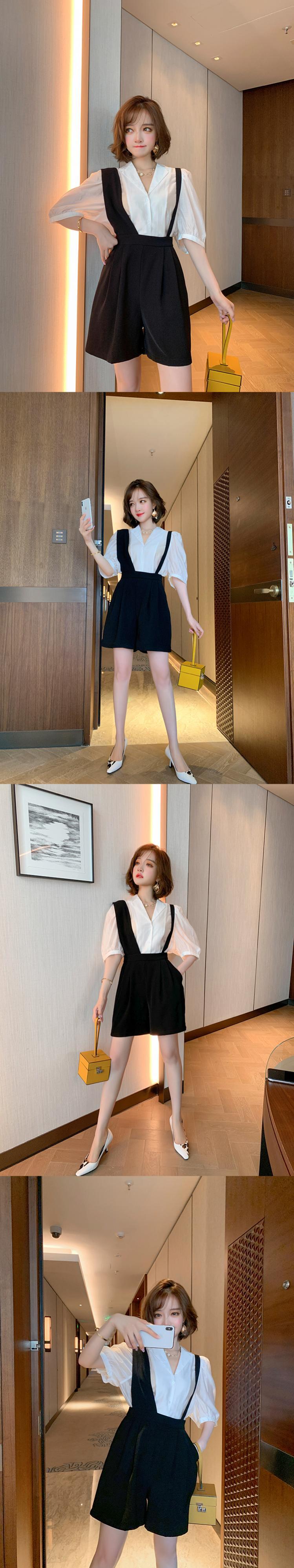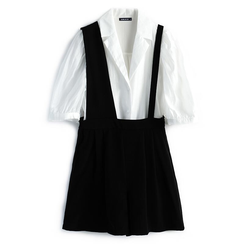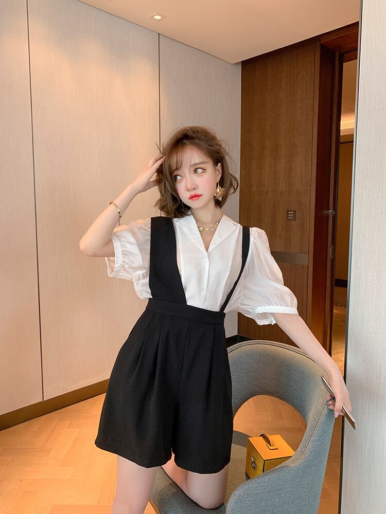 カラースリーブシャツ ハイウェストウェストワイドレッグショーツ サマー ランタンスリーブ 夏物 ブルマー ワイドパンツ MIUCO73851276790
