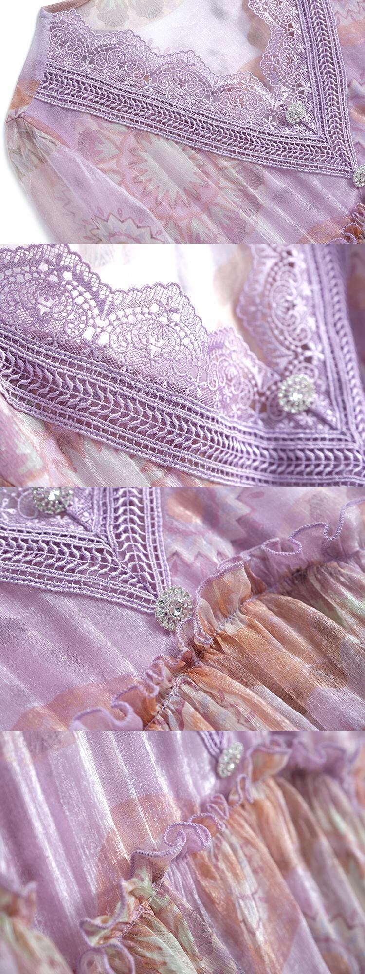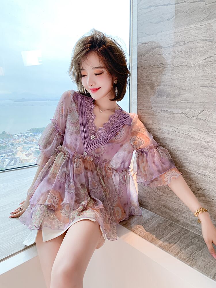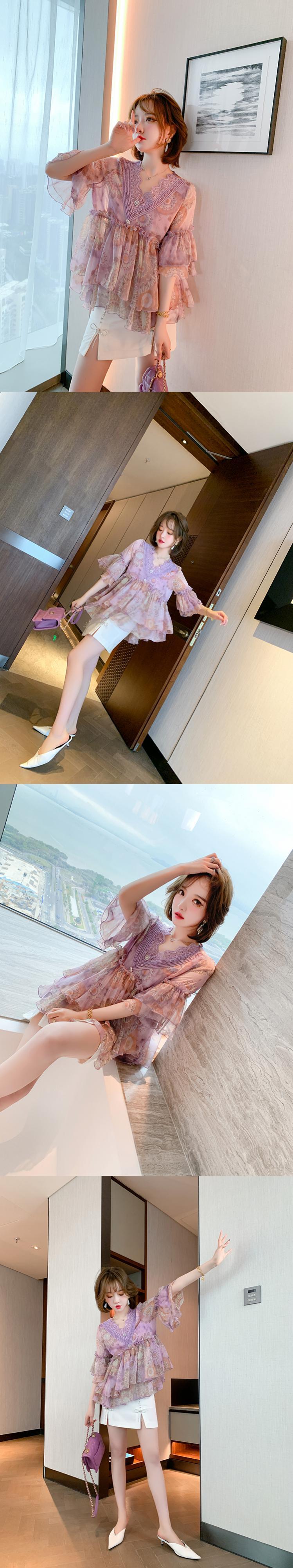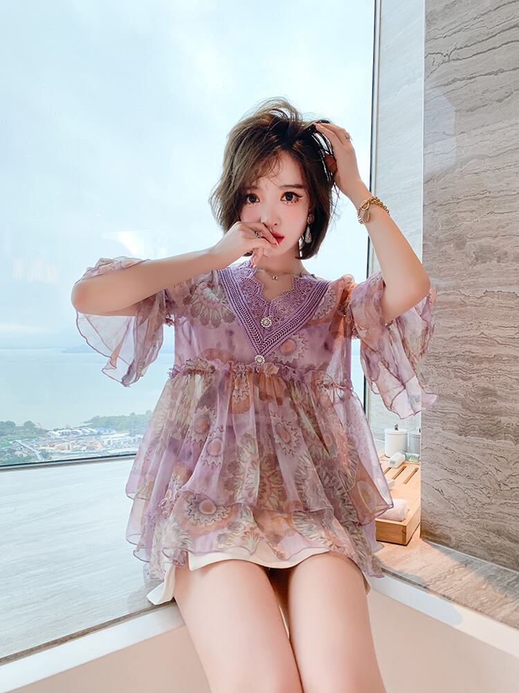 レースVネックプリントシャツ トップス サマー 夏物 MIUCO27766542760