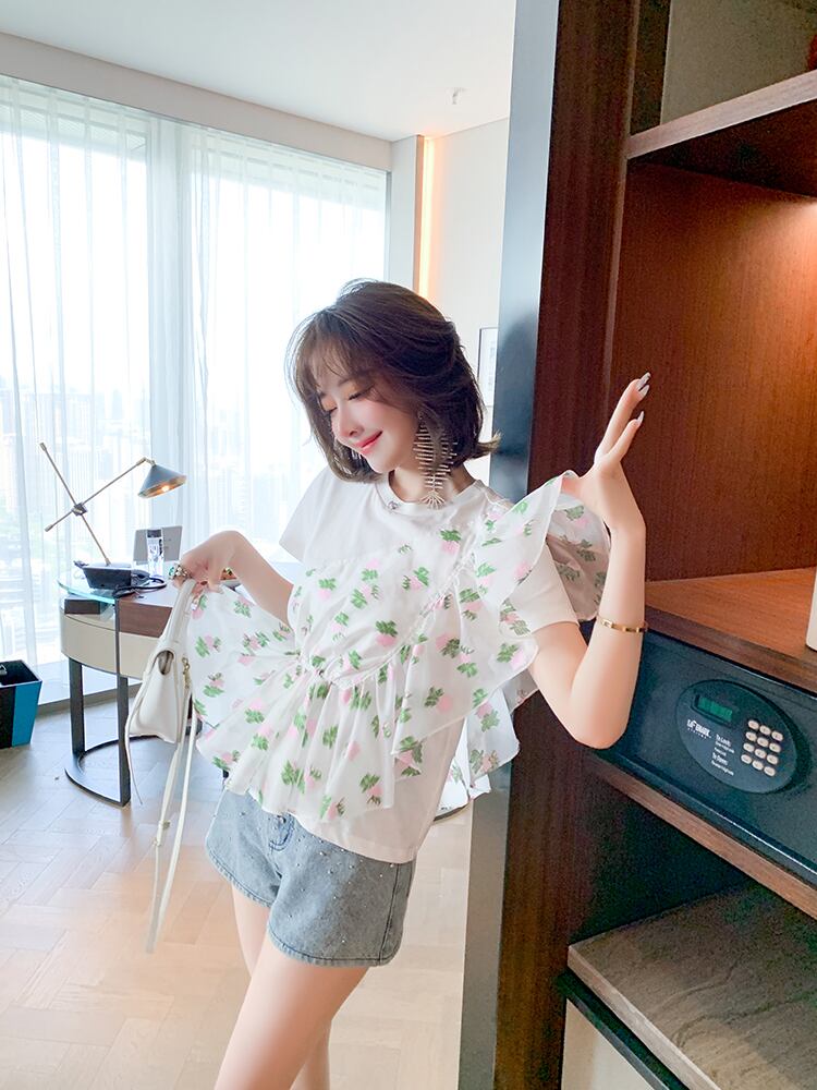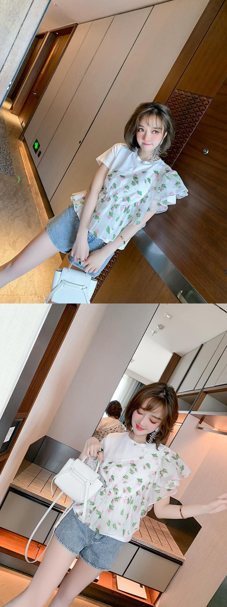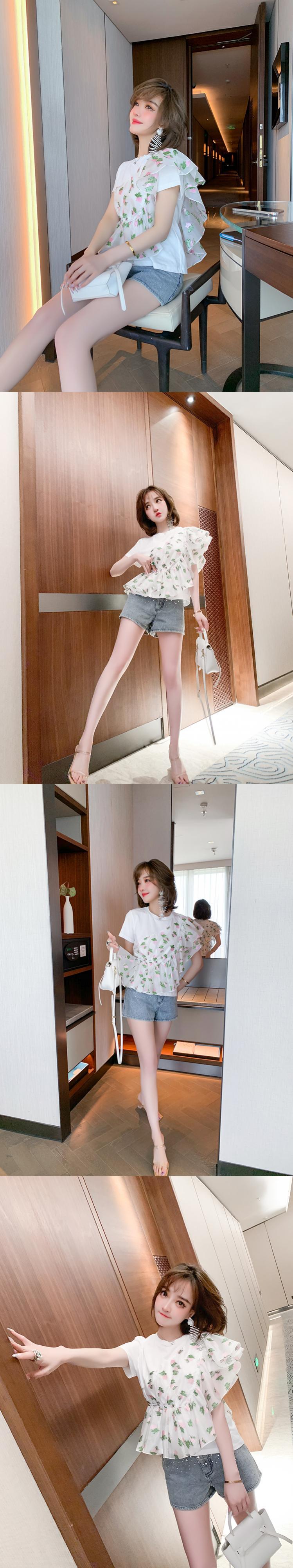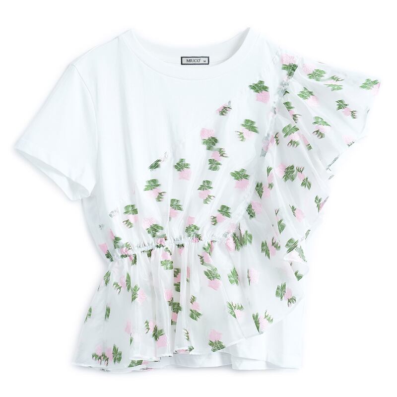 ジャカードウェスト薄手ラウンドネックTシャツ サマー 夏物 Oネック ステッチ MIUCO83938951850