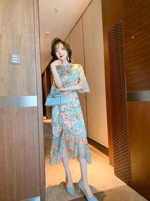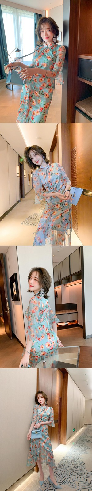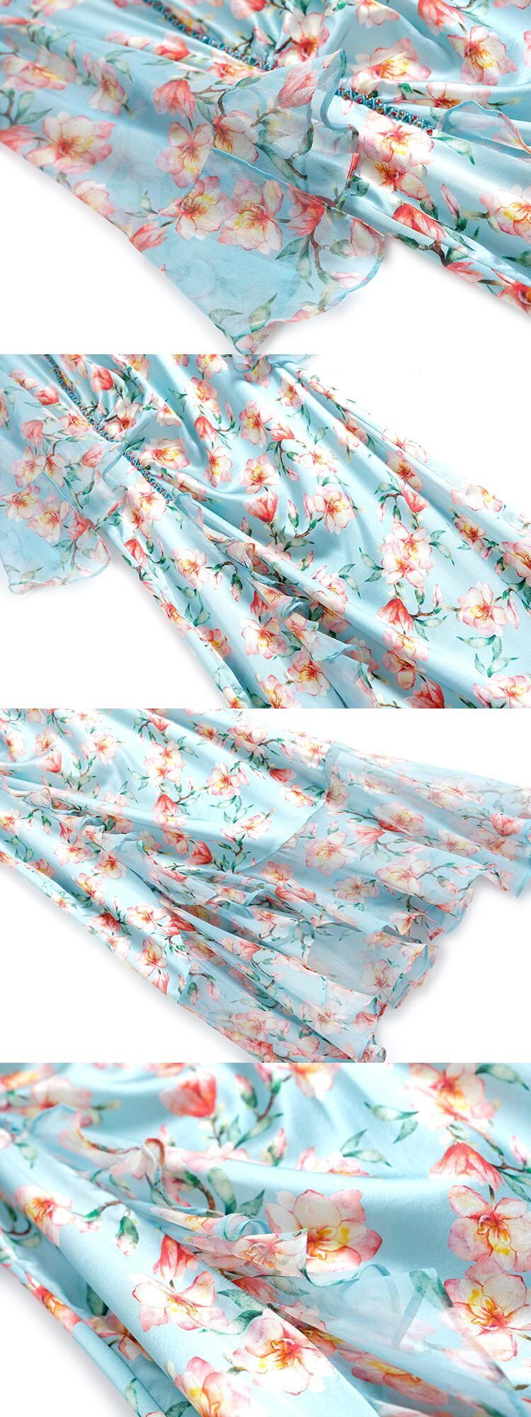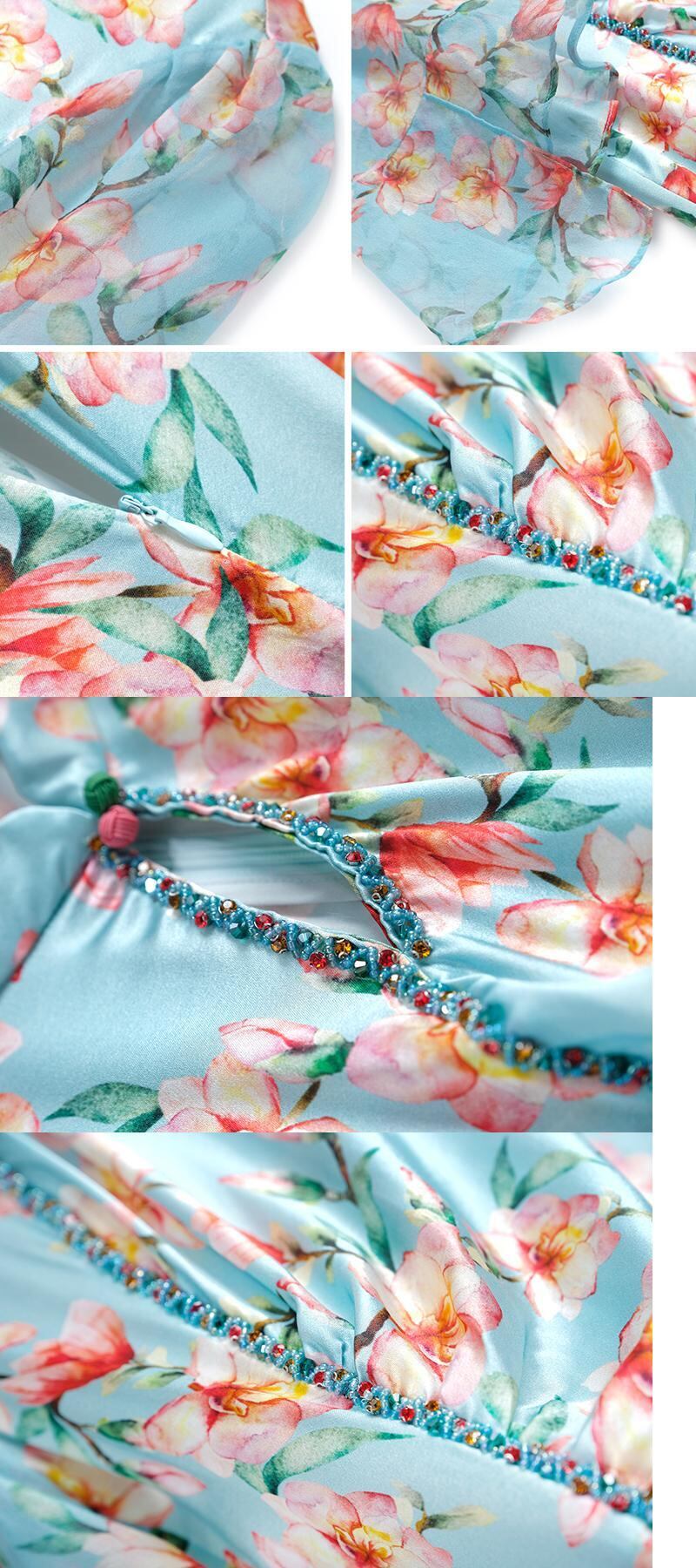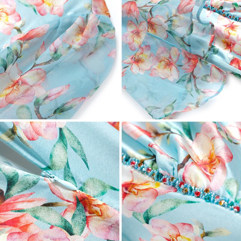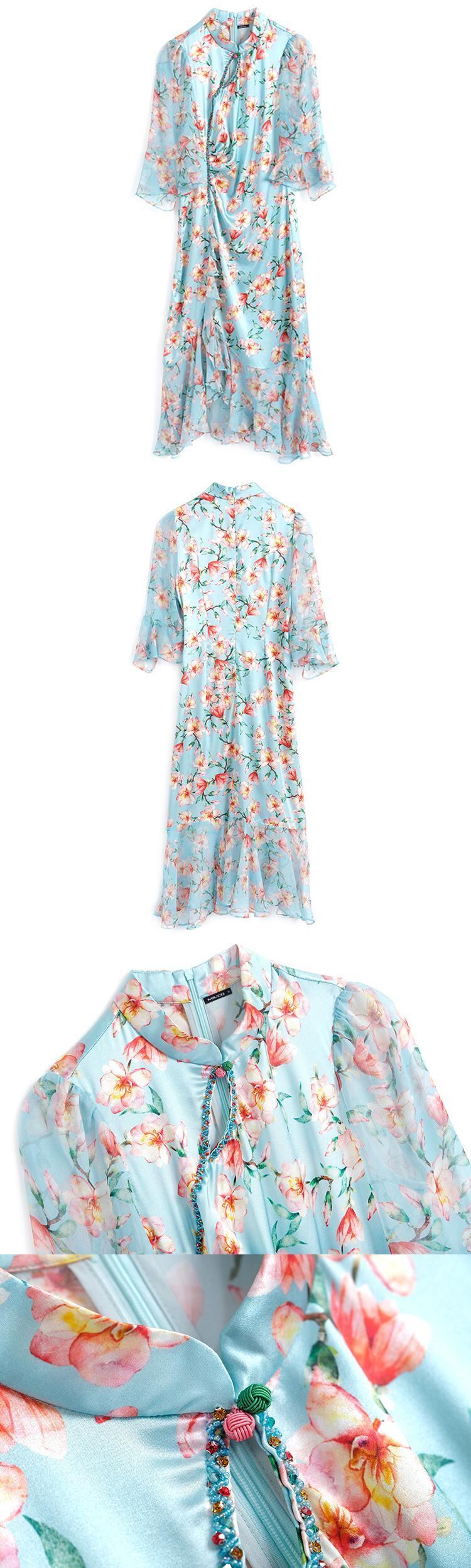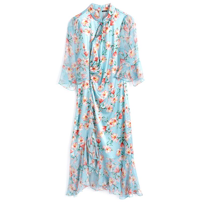 カラースリーブプリント柄ドレス サマースタイル 夏物 シルク MIUCO95597683977