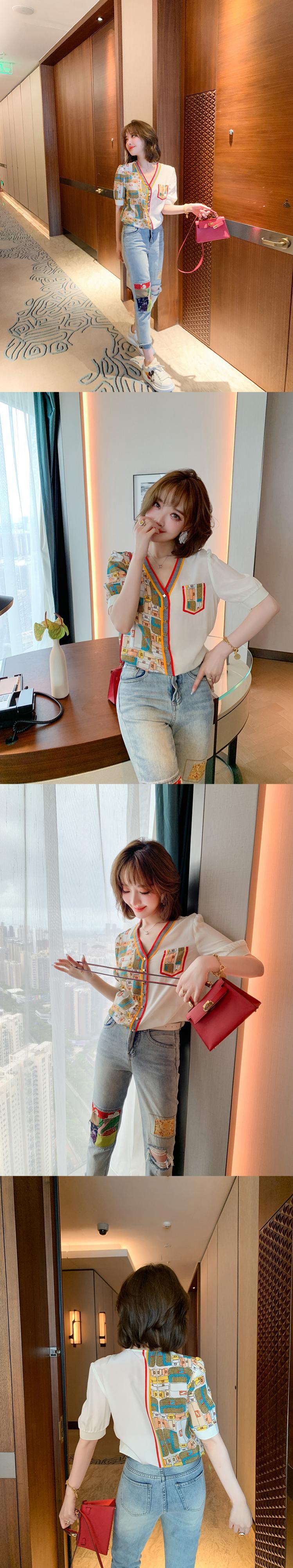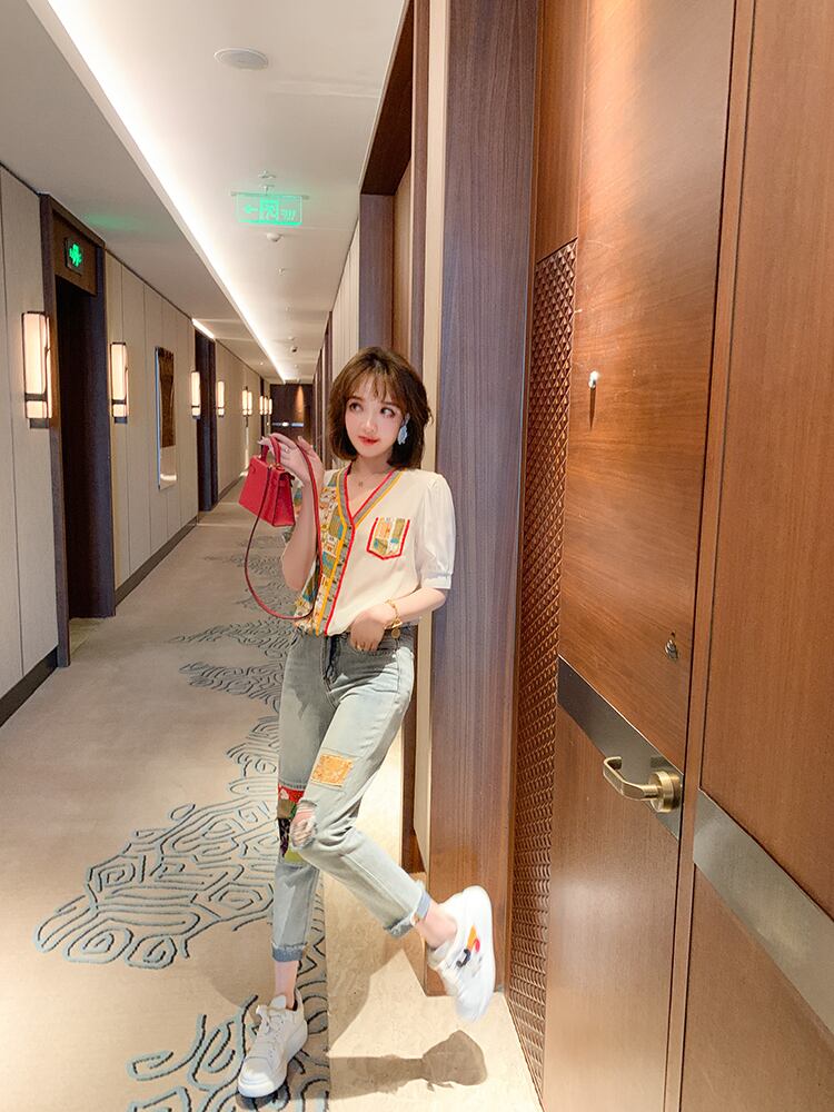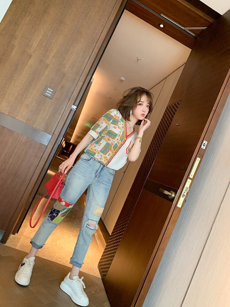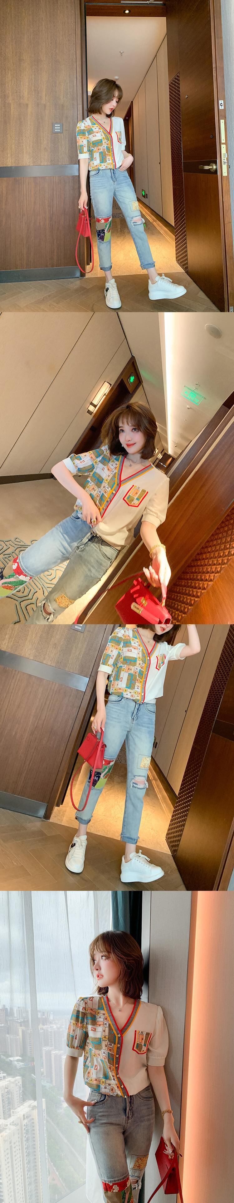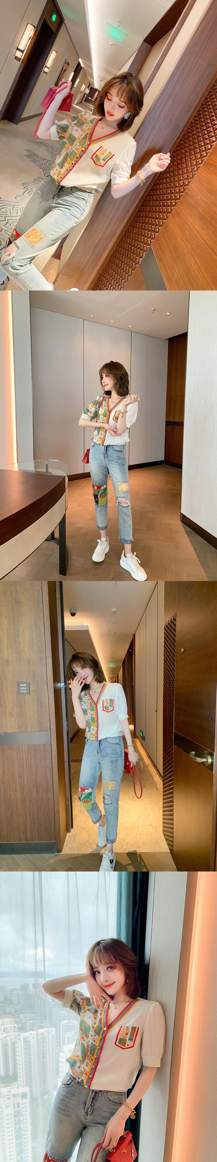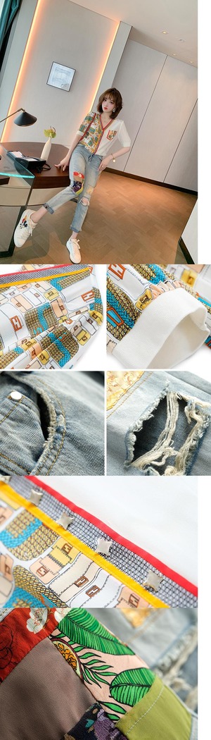 プリントスタイルシャツ ジーンズ サマー 夏物 ステッチ MIUCO77644596017