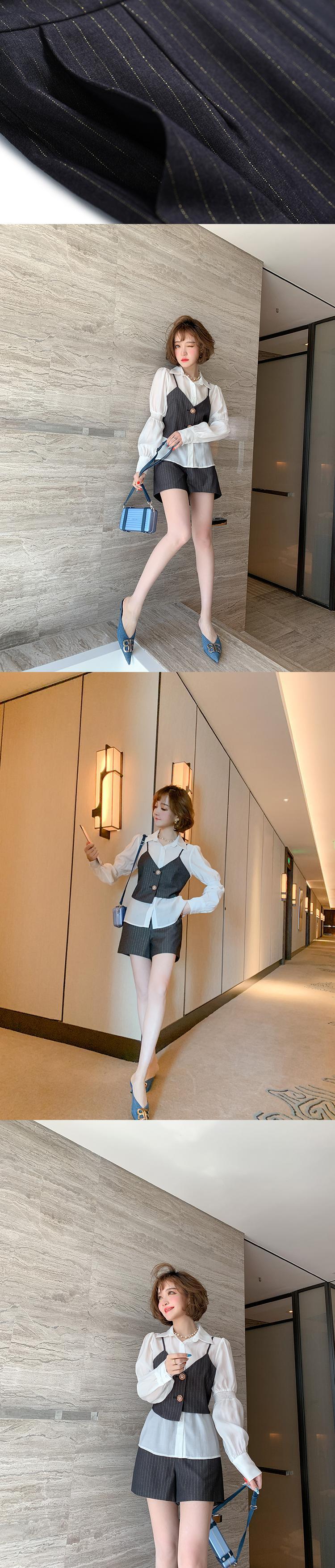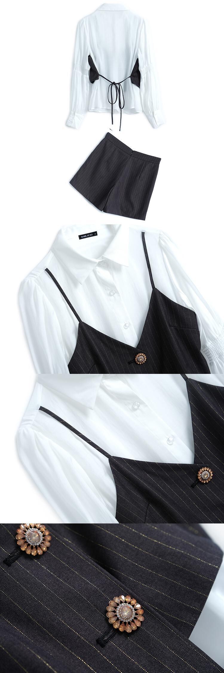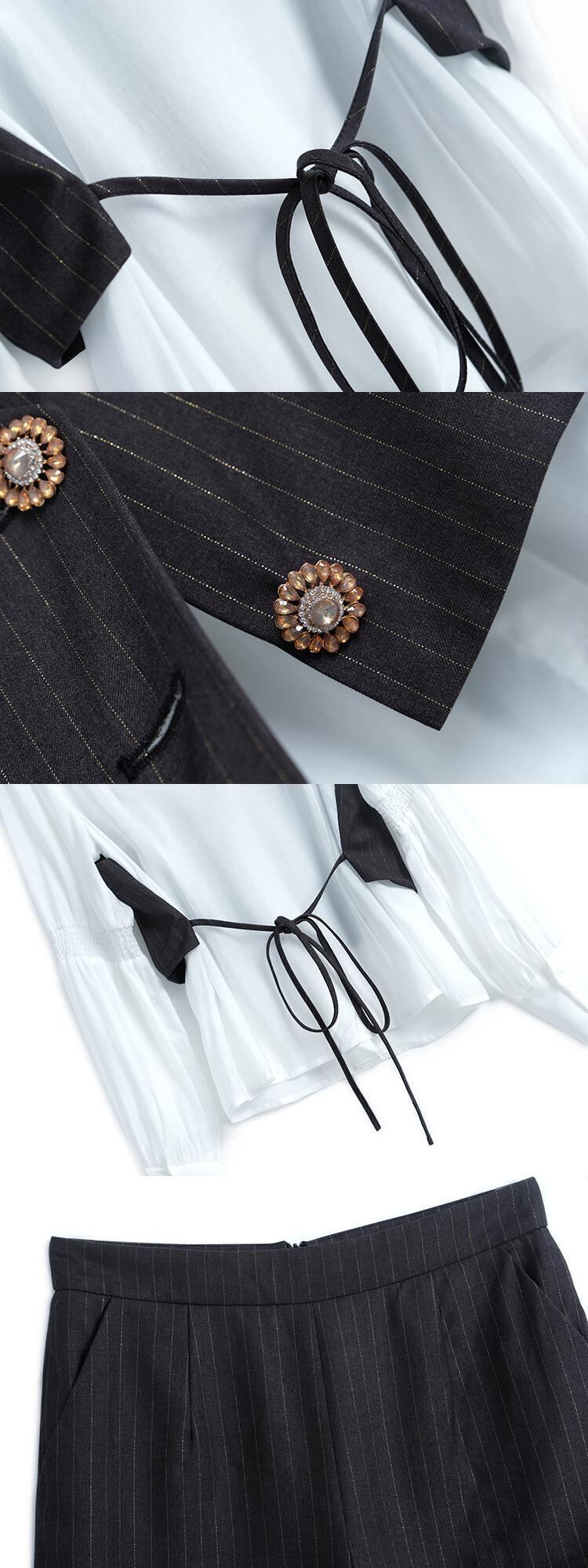 ストライププリーツシャツ ショーツ レディースオータム 秋物 ブルマー ステッチ MIUCO45612207329