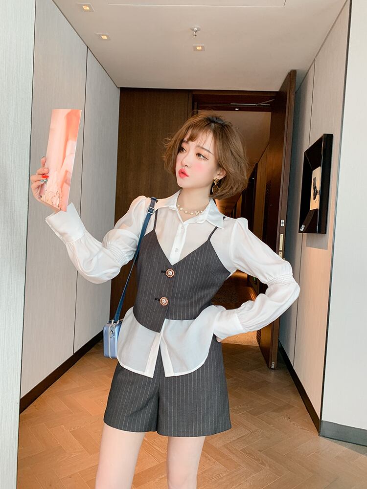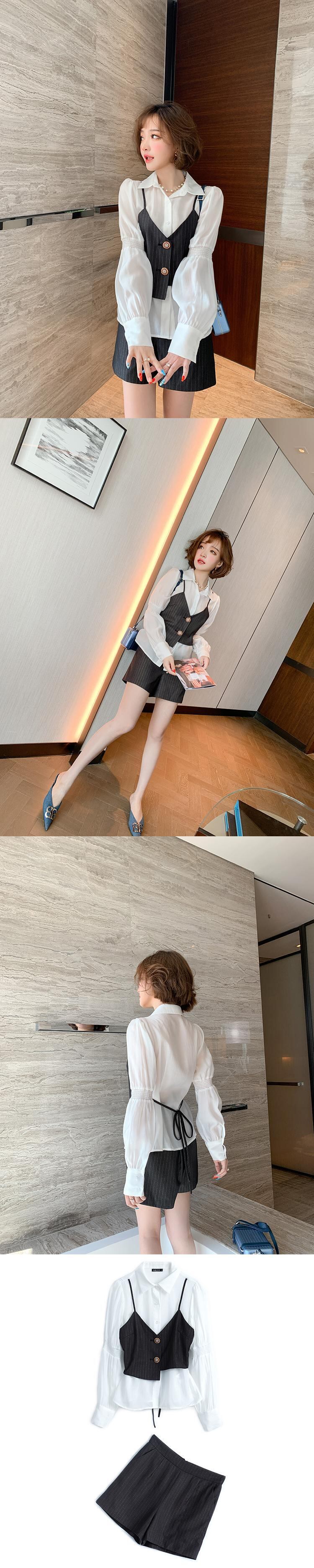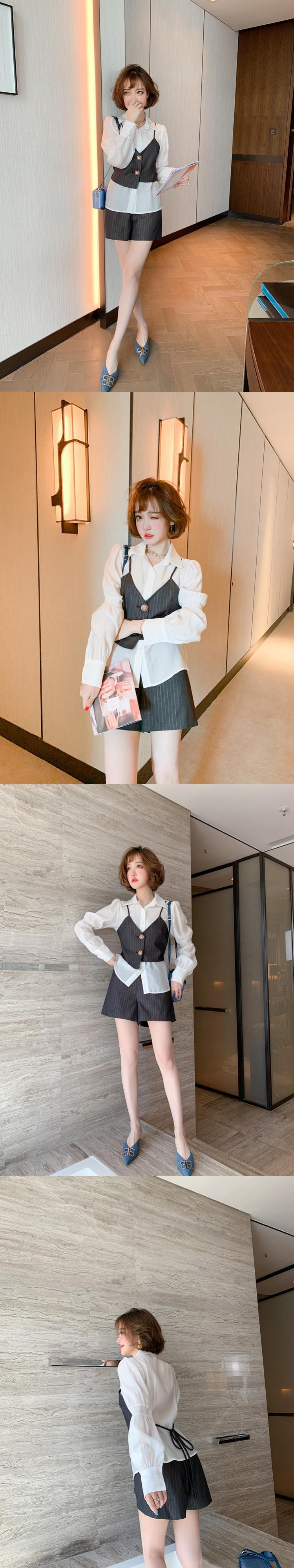 ストライププリーツシャツ ショーツ レディースオータム 秋物 ブルマー ステッチ MIUCO45612207329