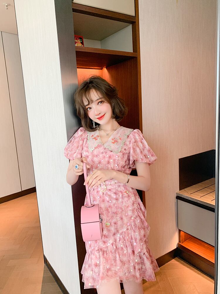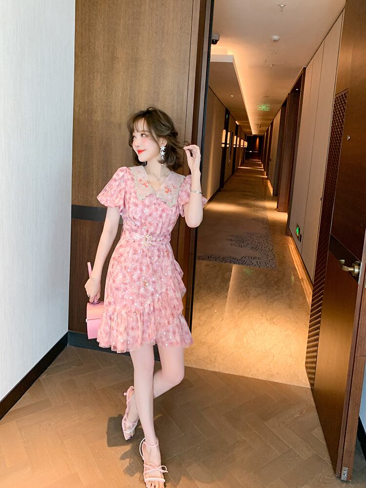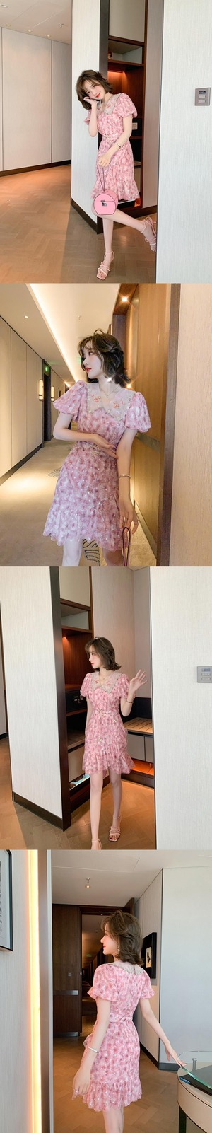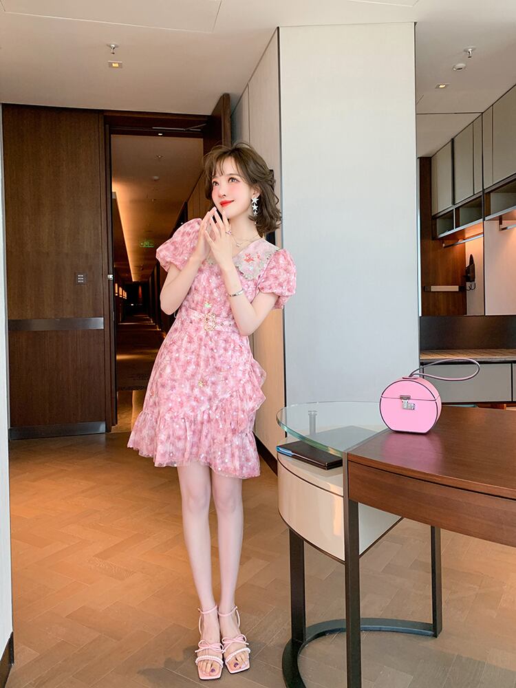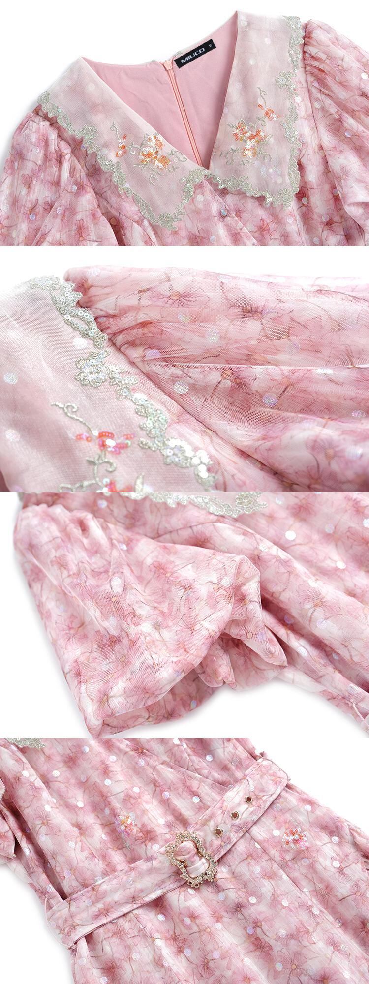 メッシュプリントウェストドレス サマー 夏物 MIUCO32098240734