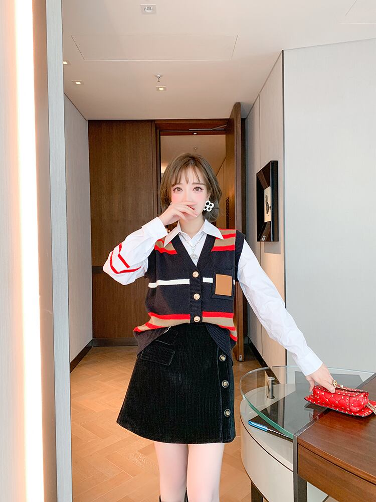 シャツ ストライプカーディガンニットスプリング 春物 MIUCO26287627435