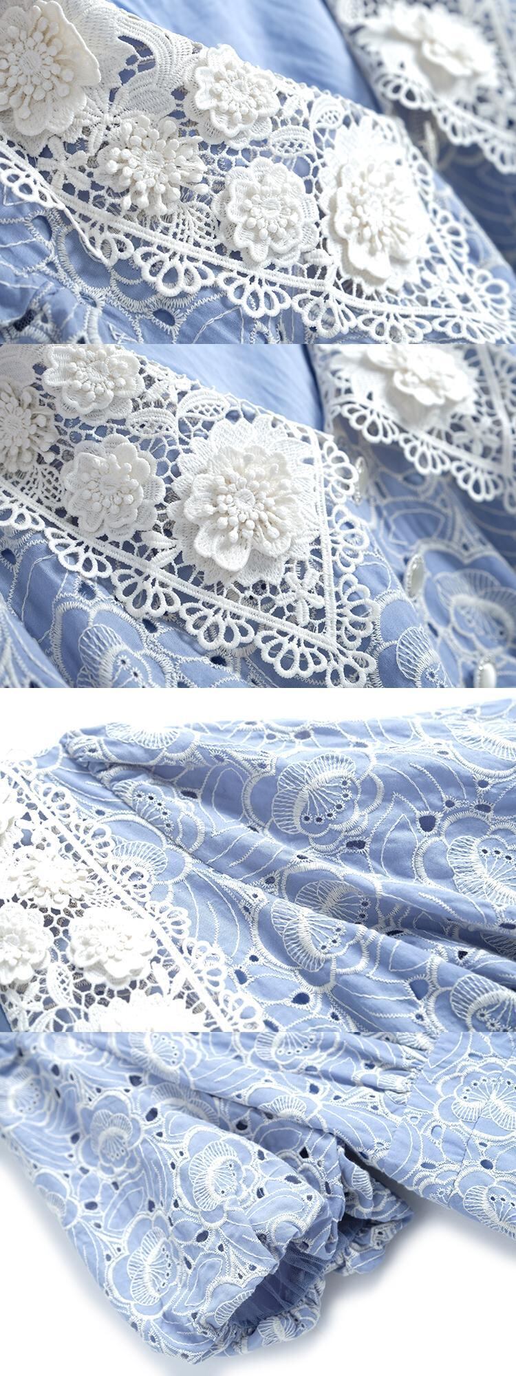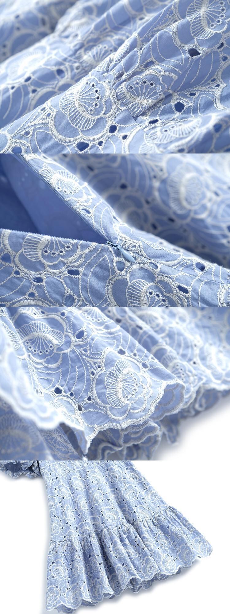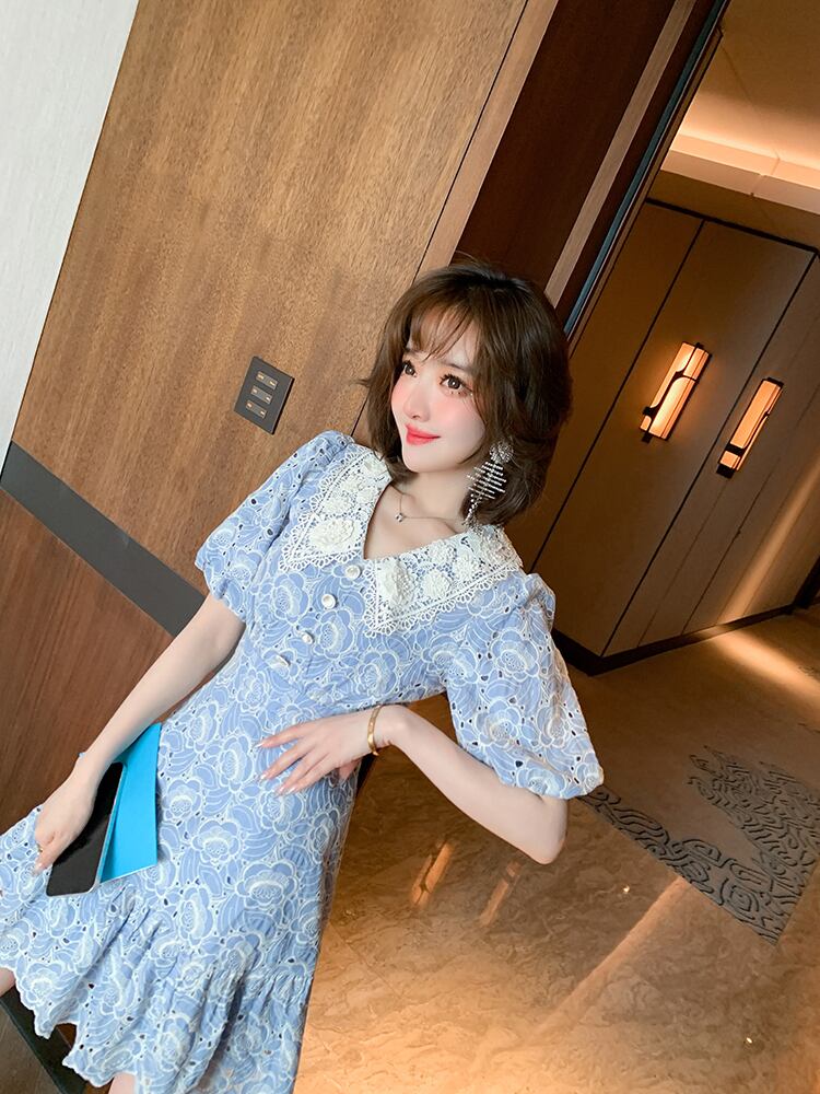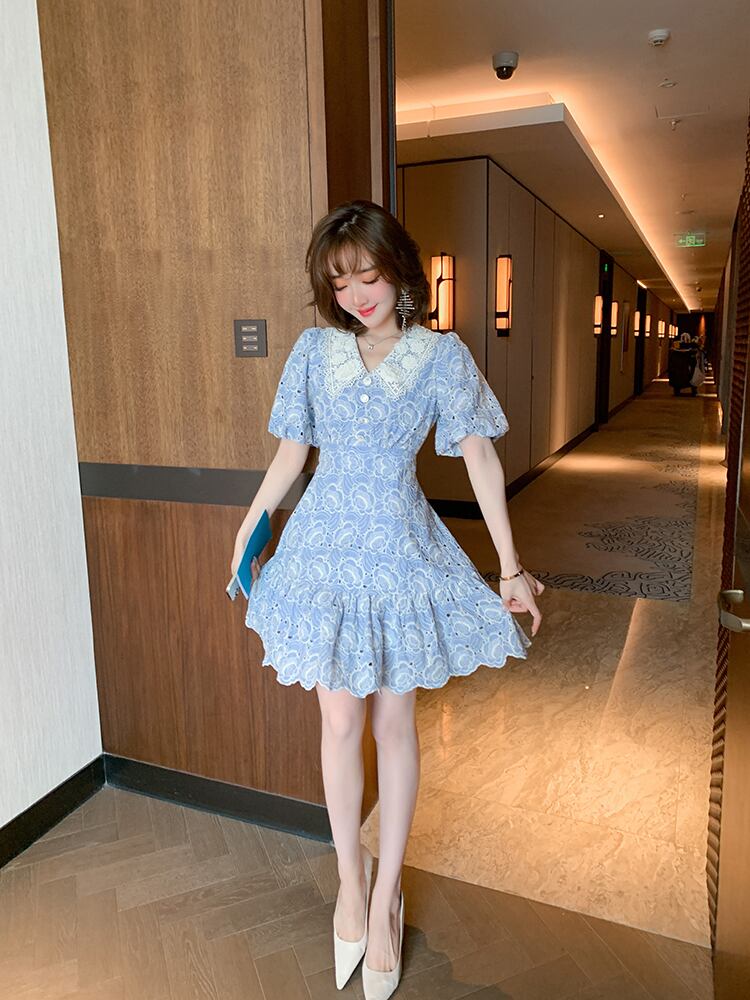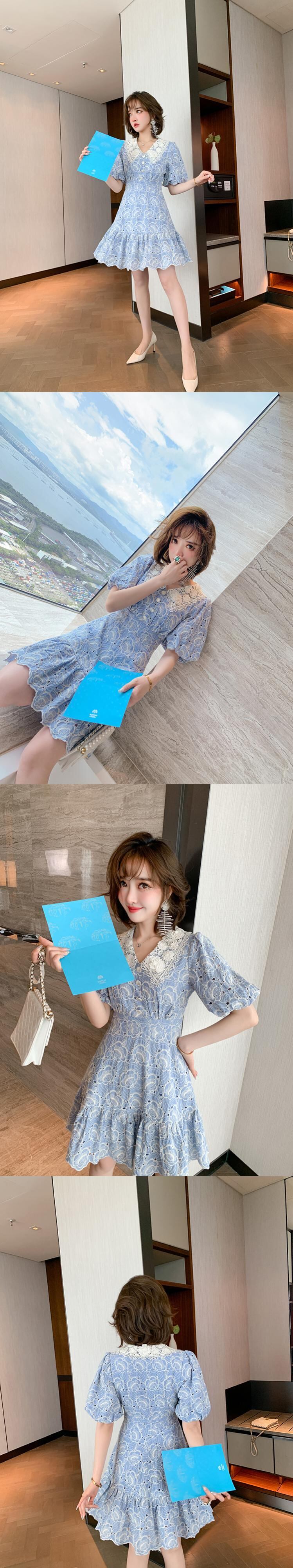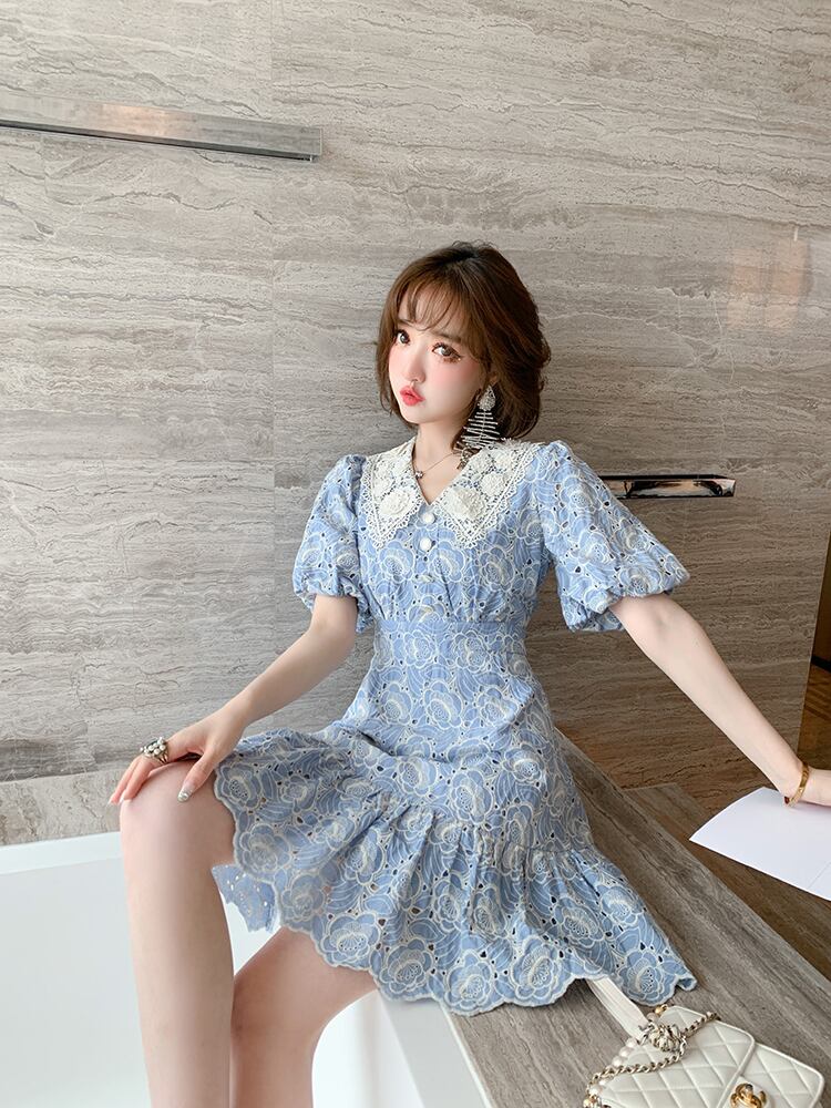 刺繍レースカラーウェストラッフルドレス サマー 夏物 MIUCO42002096378
