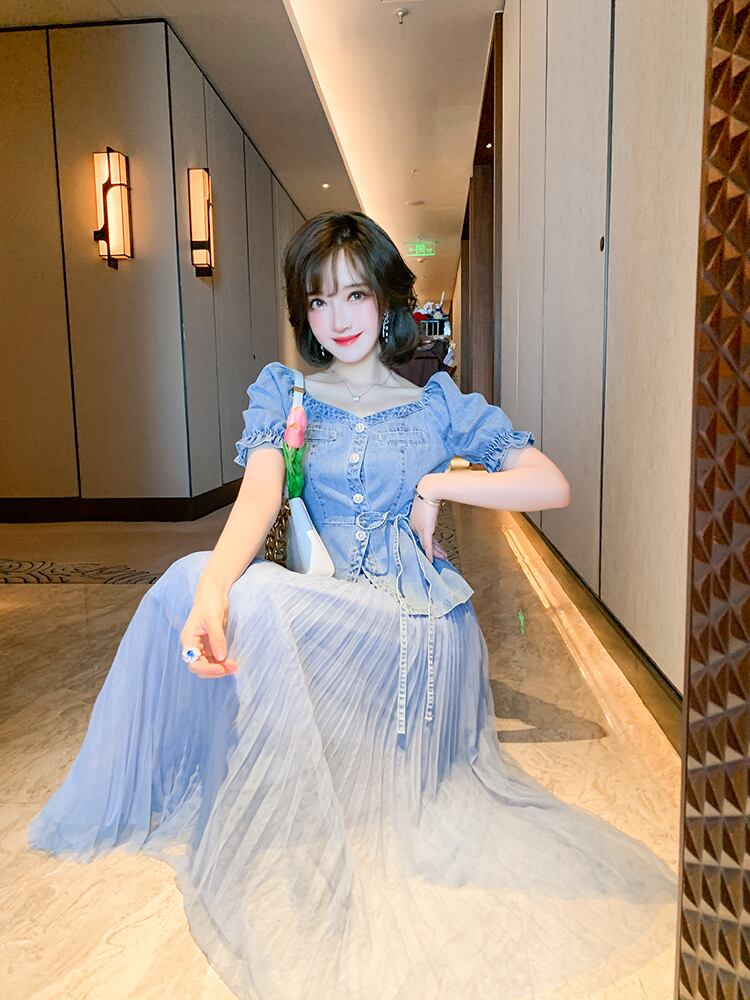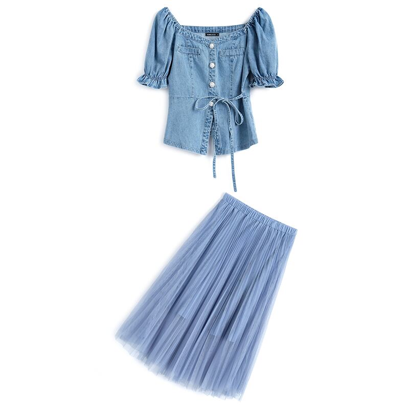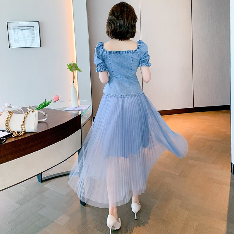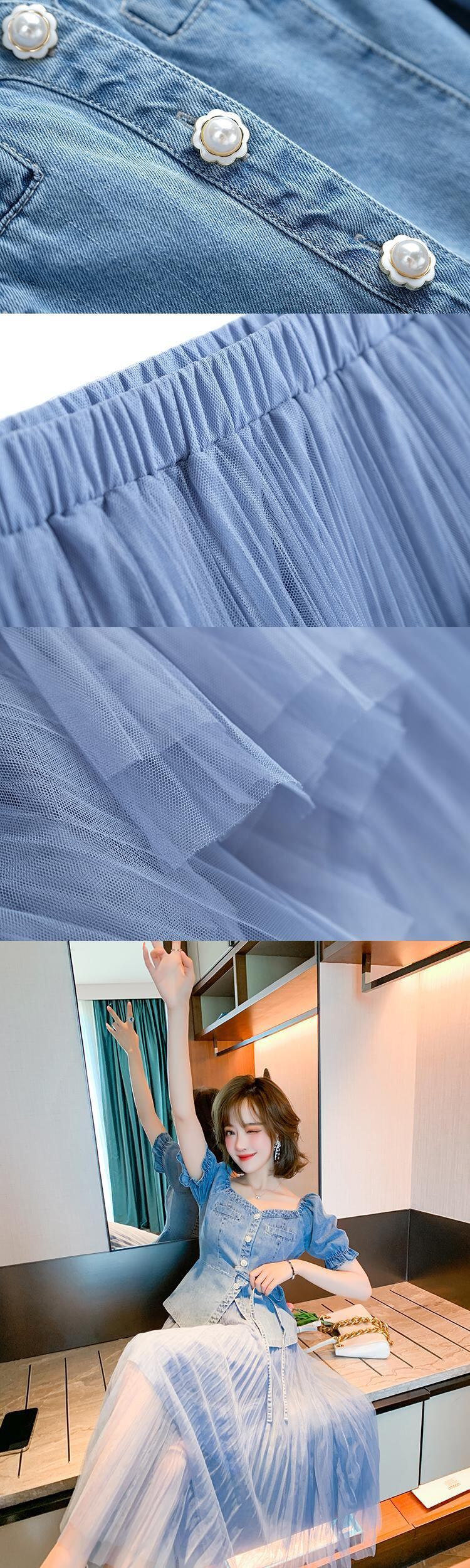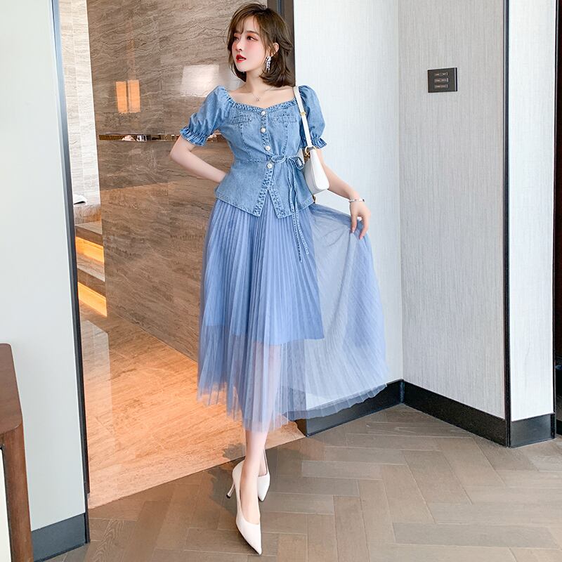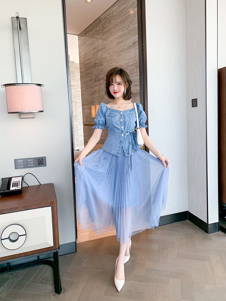 スリーブスリムトップス メッシュプリーツスカート セット サマー 夏物 MIUCO49477356080