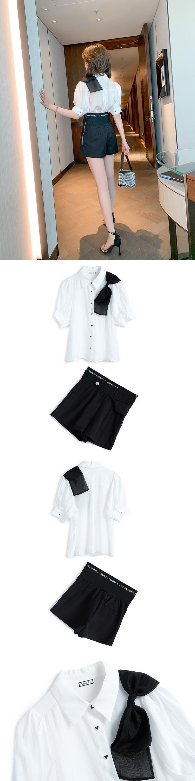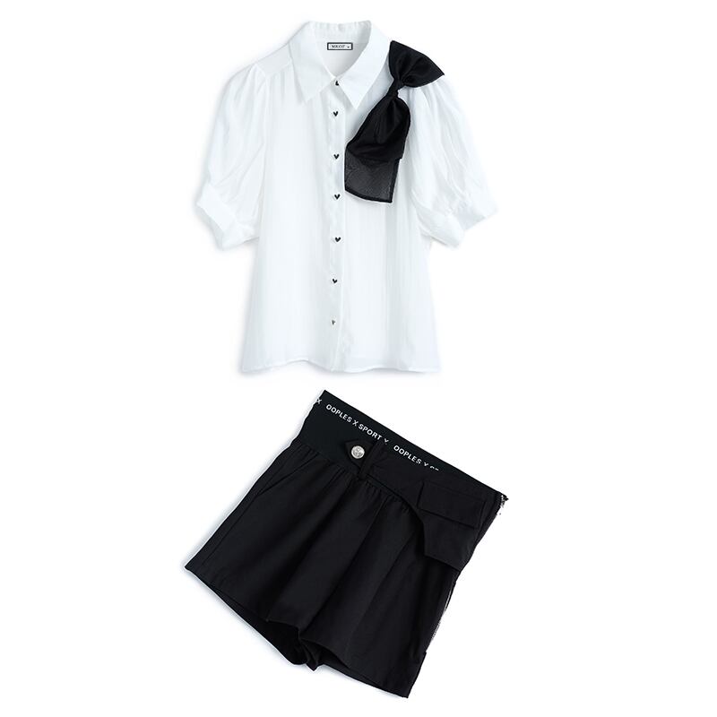 カラーボタンシャツ ウェストショーツ セット サマー リボン 夏物 ブルマー MIUCO77543915209