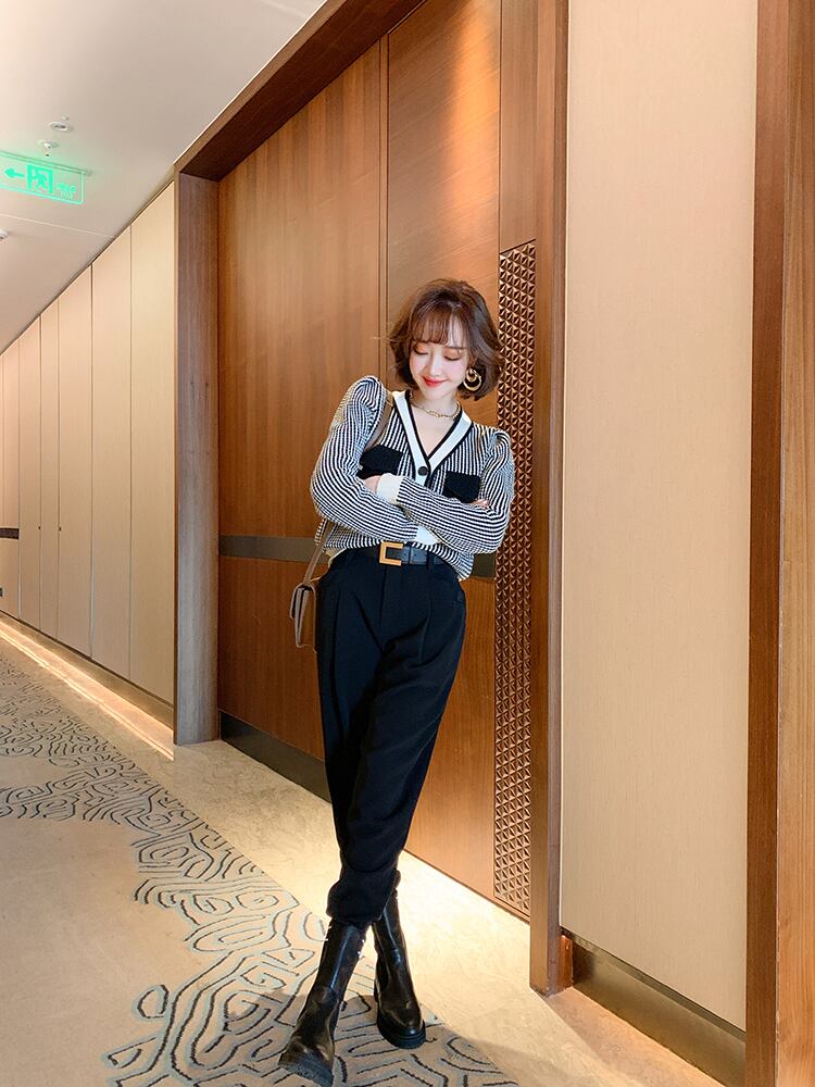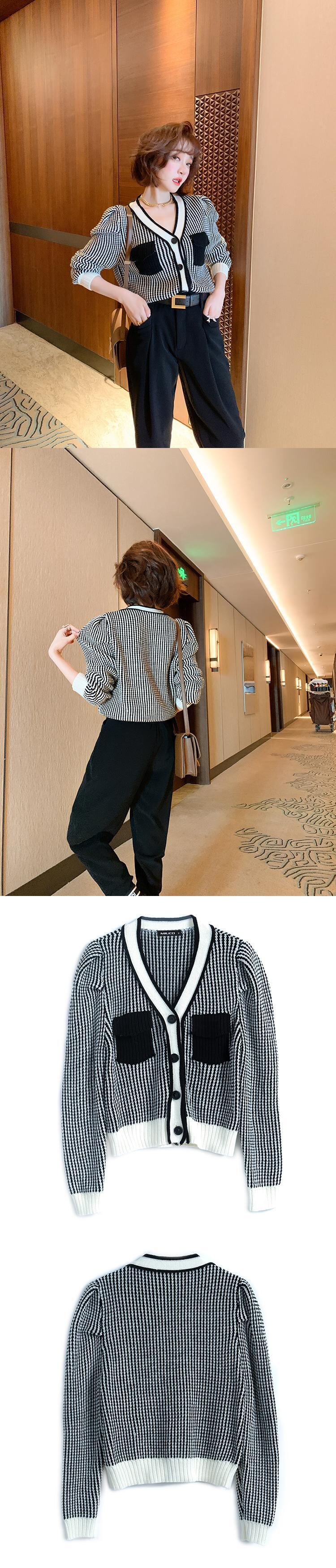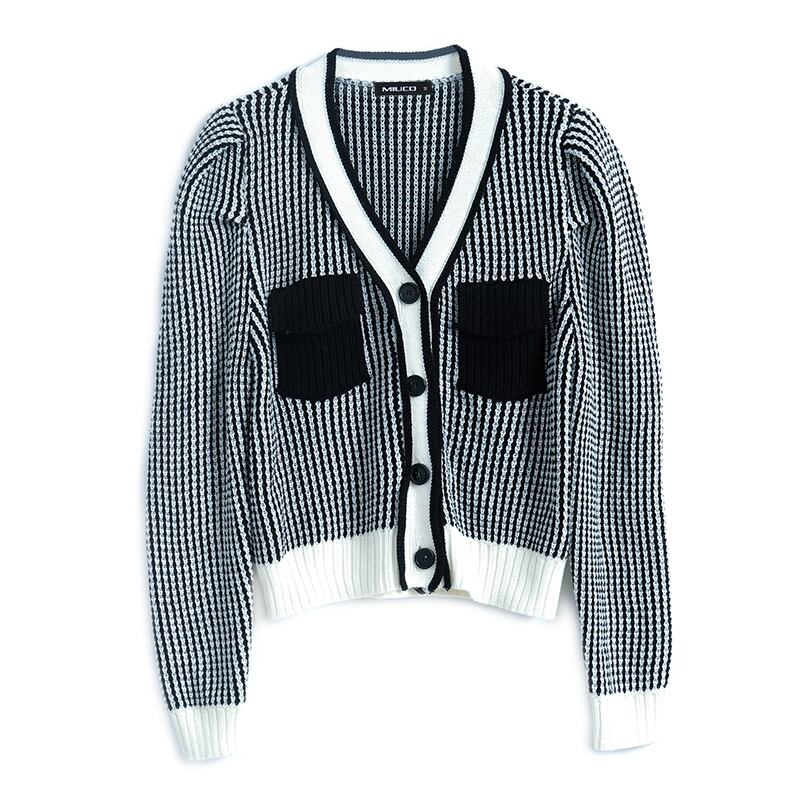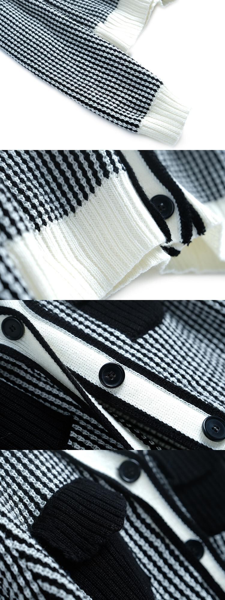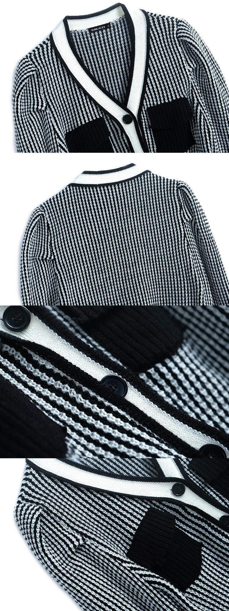 カジュアルカラーストライプポケットVネックニットカーディガンオータムウィンター 秋物 冬物 MIUCO8666014087