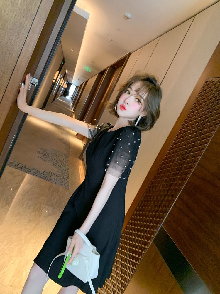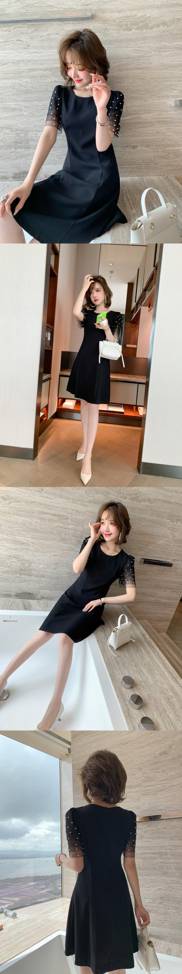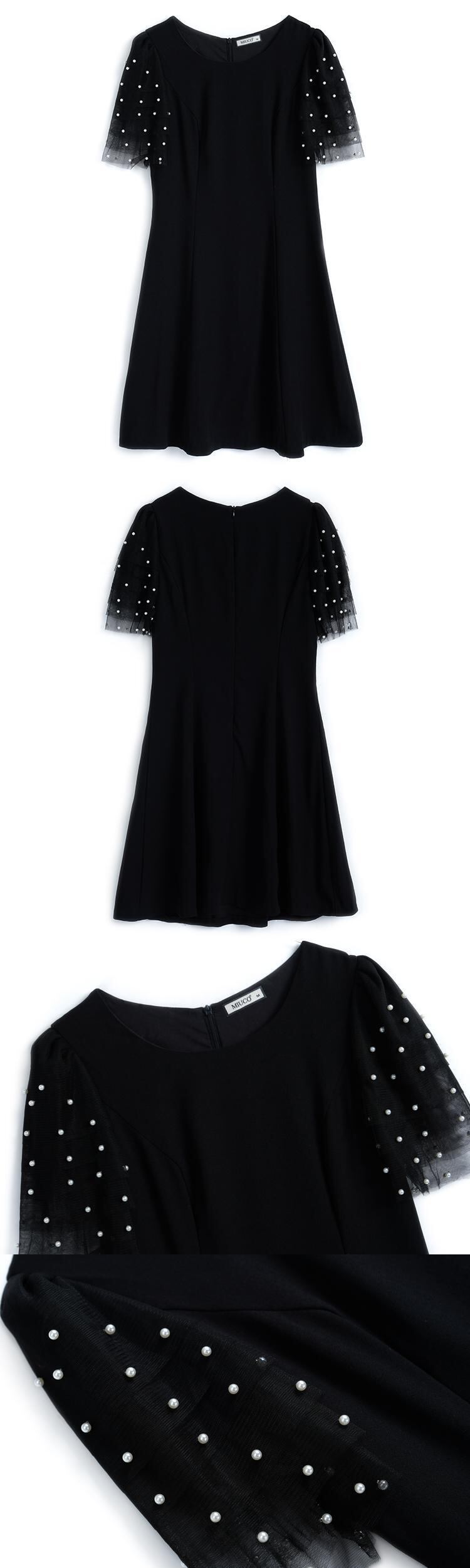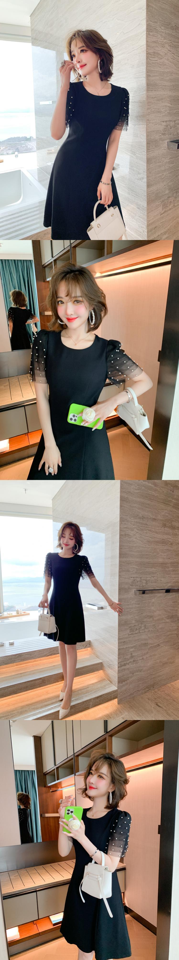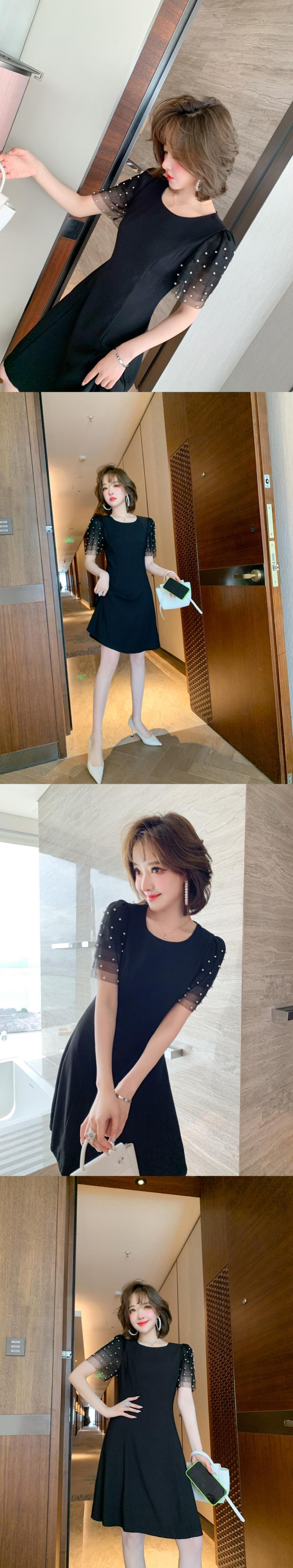 メッシュスリーブウェスト薄手ドレス サマー 夏物 MIUCO38686079396