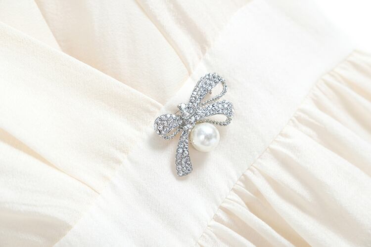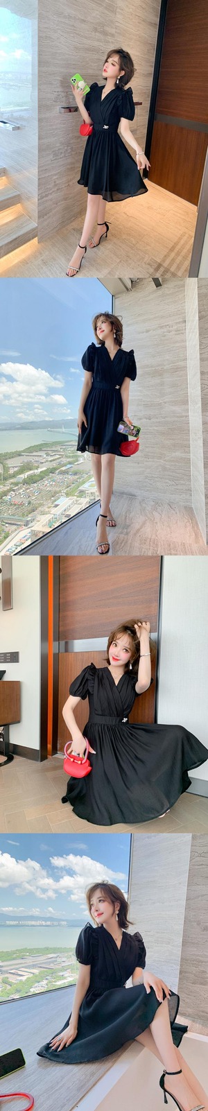 Vネックプリーツウェストドレス サマースタイル エレガント 夏物 MIUCO4632634354
