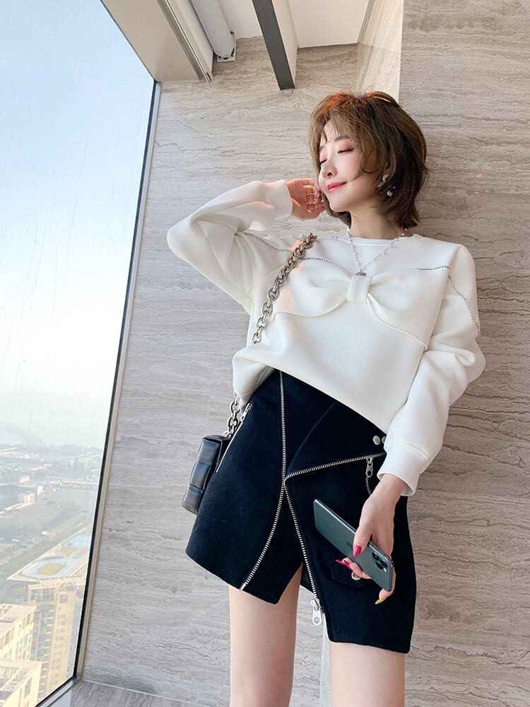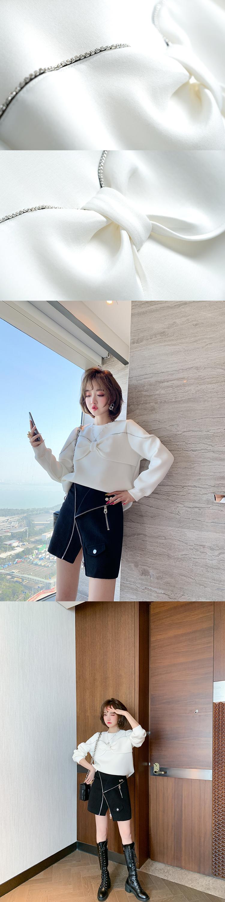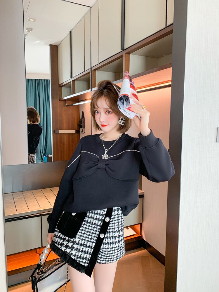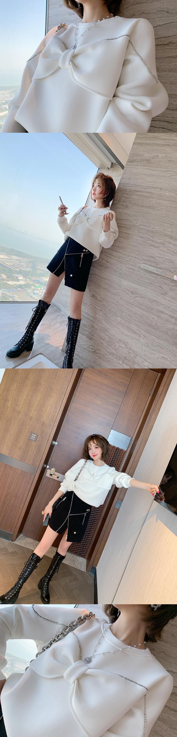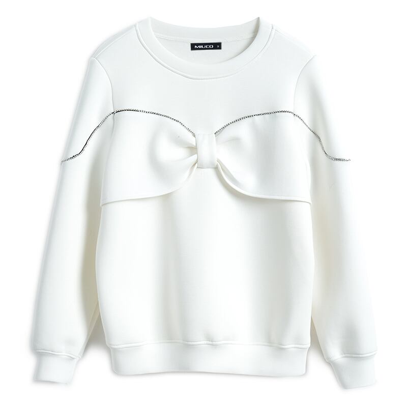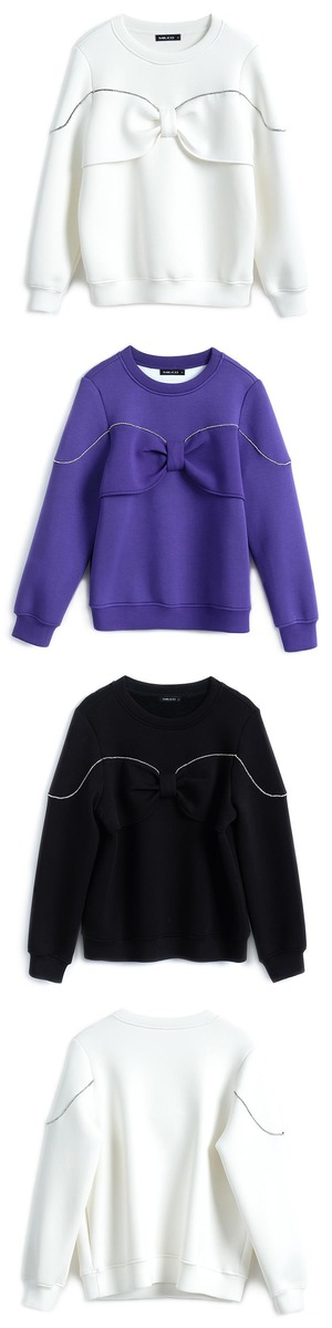 ベルベットラウンドネックルーズスウェット ウィンター リボン 大人ガーリー スウィート キュート カジュアル 冬物 Oネック MIUCO44453823820