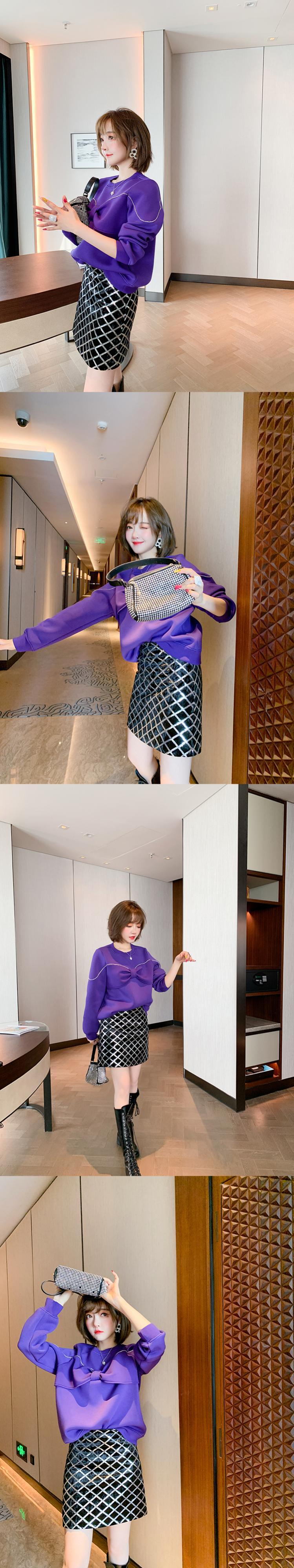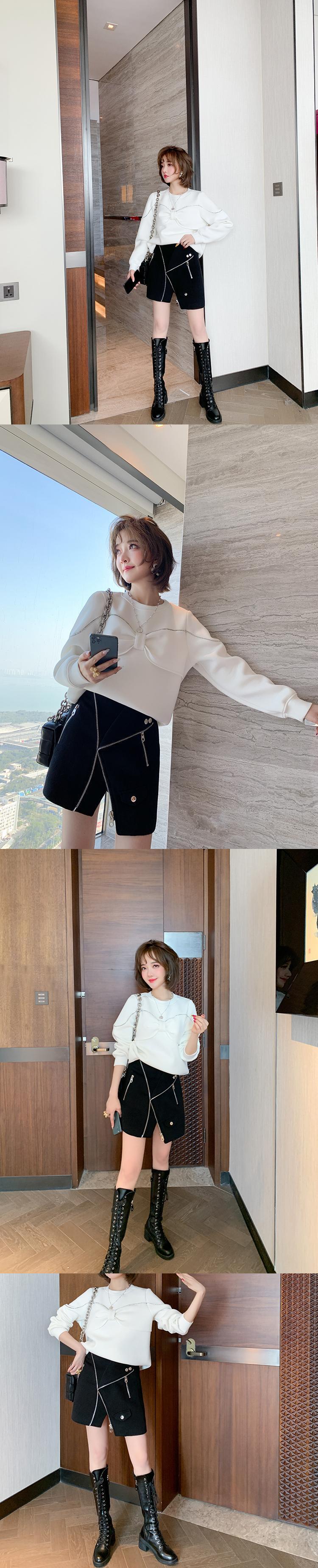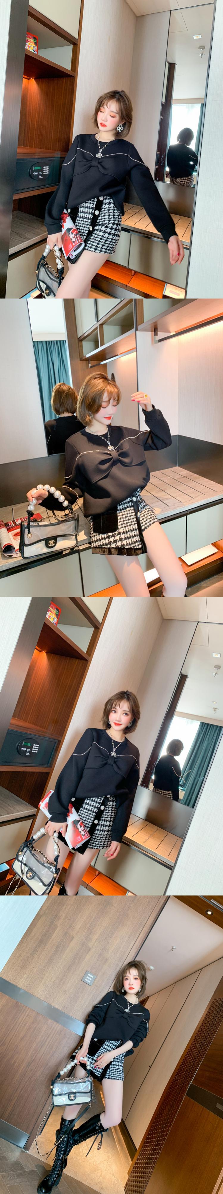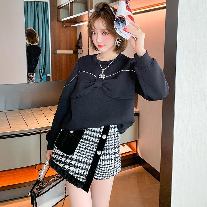 ベルベットラウンドネックルーズスウェット ウィンター リボン 大人ガーリー スウィート キュート カジュアル 冬物 Oネック MIUCO44453823820
