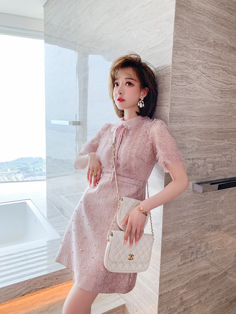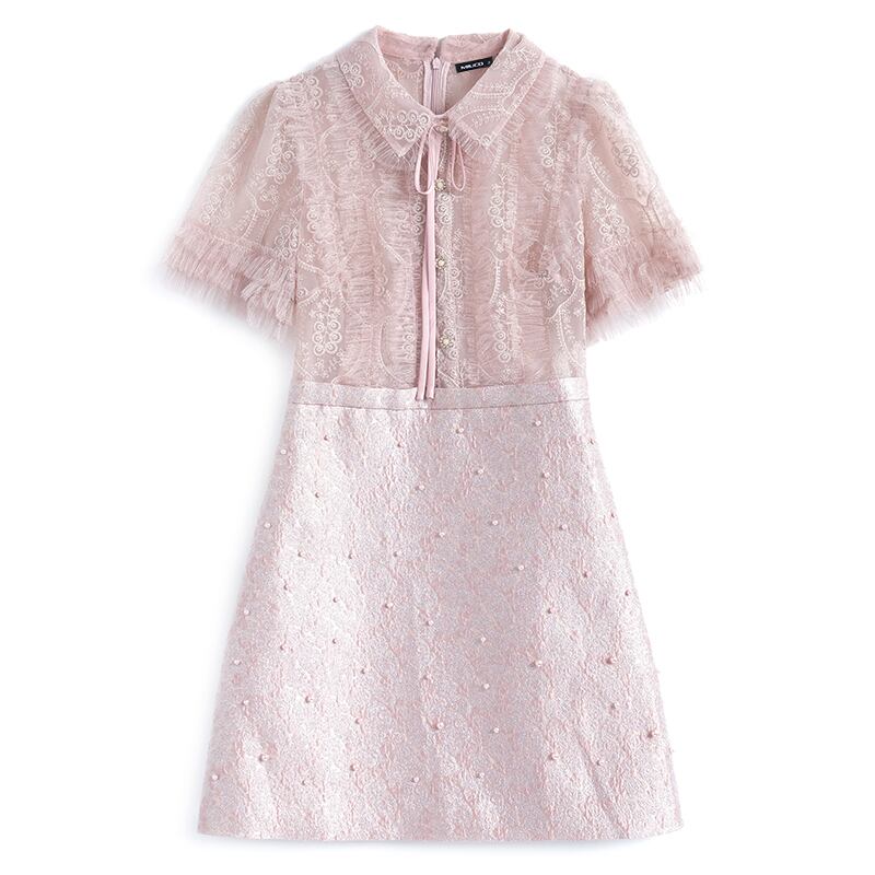 レースシャツ ジャカードドレス サマー レッド 刺繍 夏物 ステッチ MIUCO36648672787