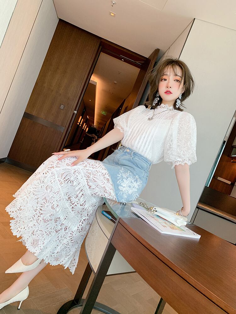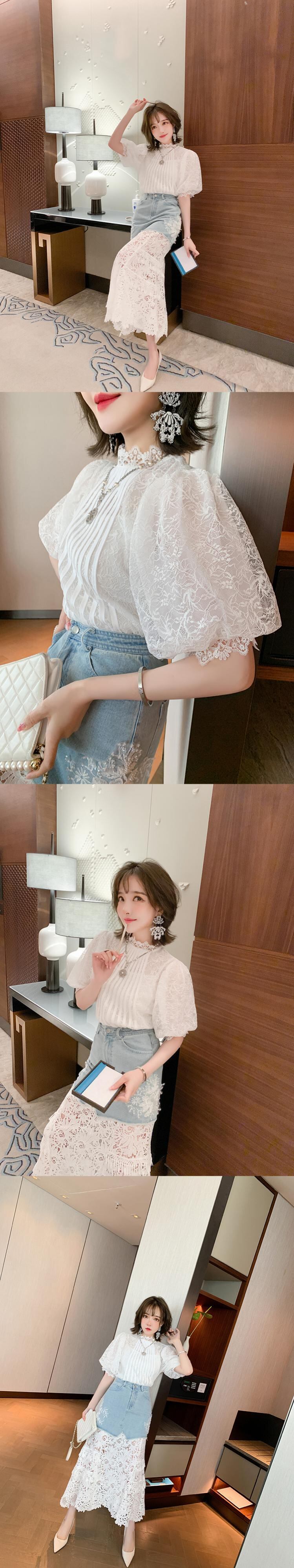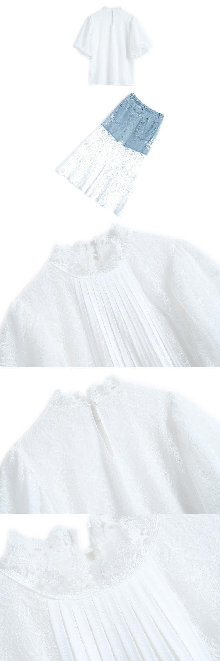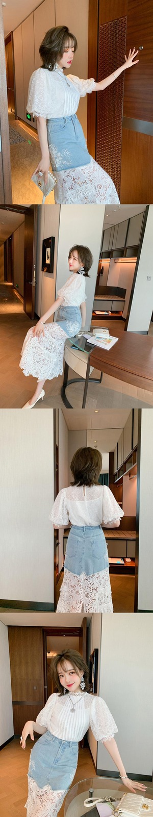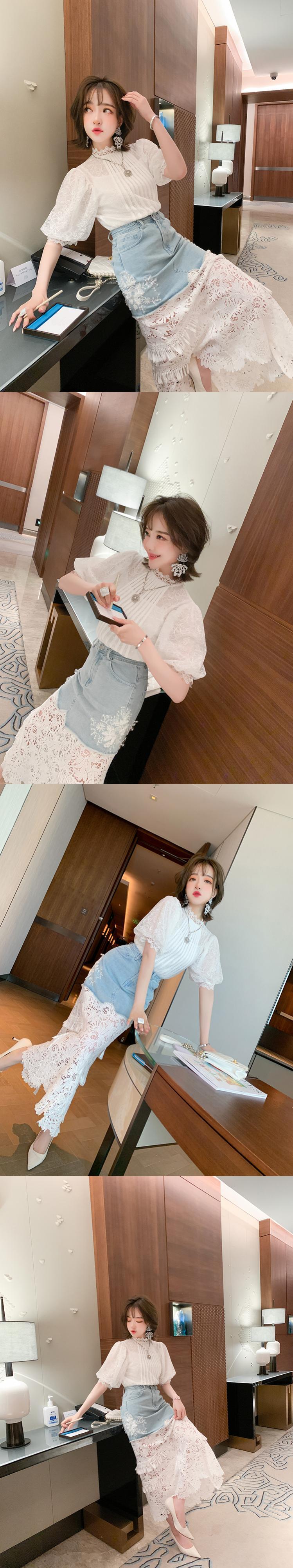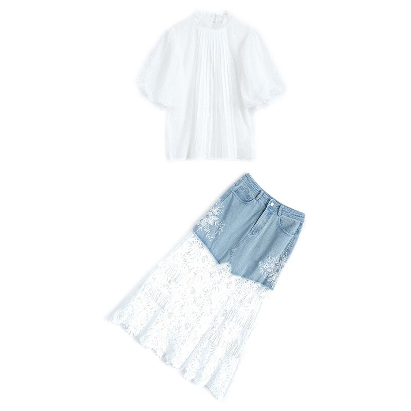 スリーブレースシャツ スリットスカート サマースタイル 夏物 ステッチ MIUCO36236823804