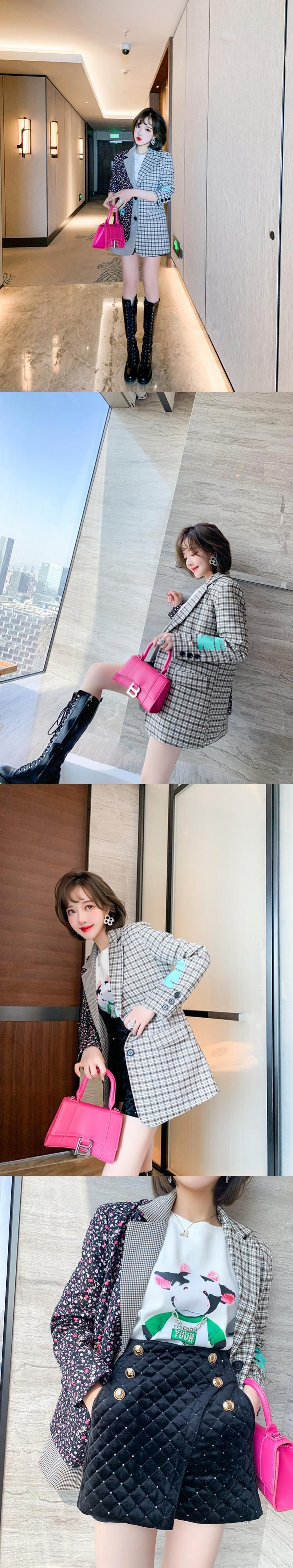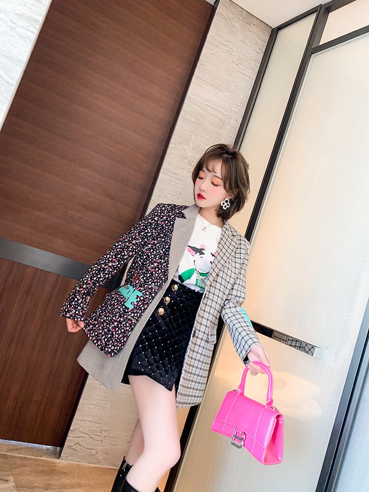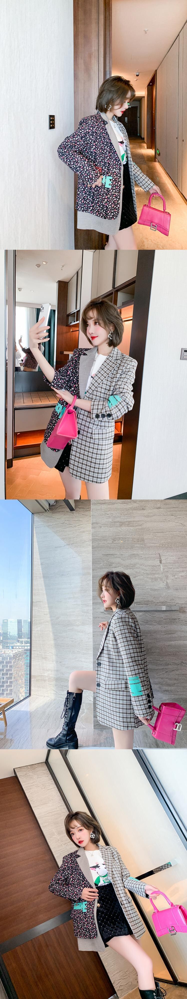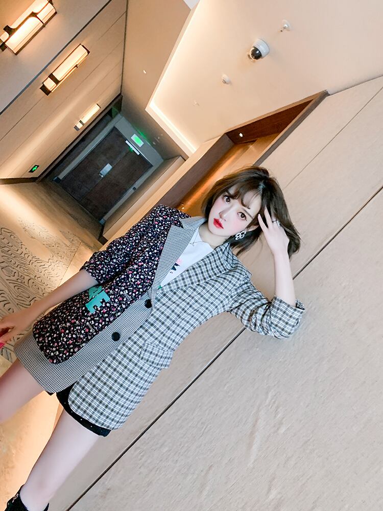 スタンダード格子柄フローラルカラージャケット スプリング レトロ 春物 花柄 ステッチ MIUCO58023493035