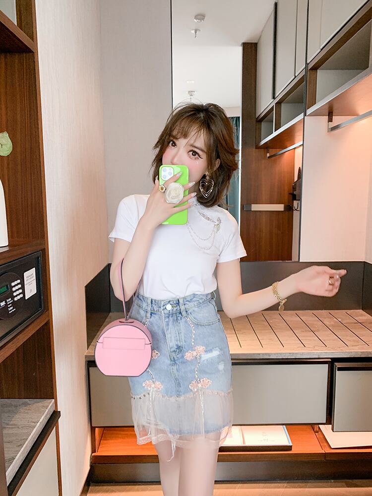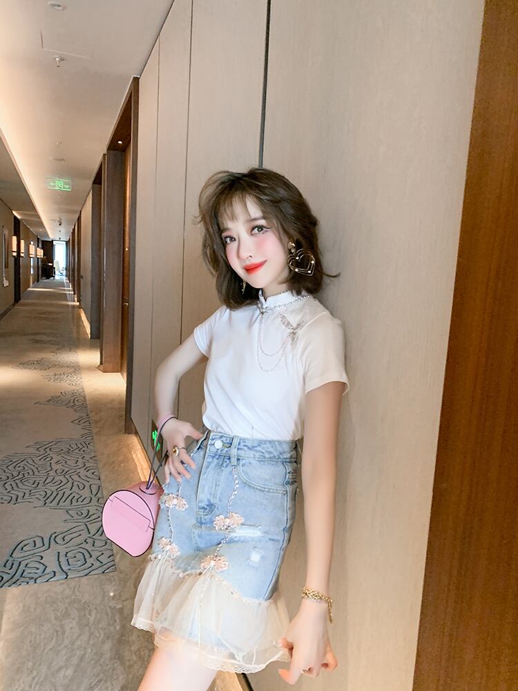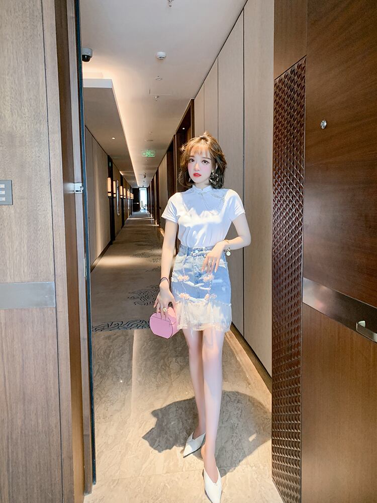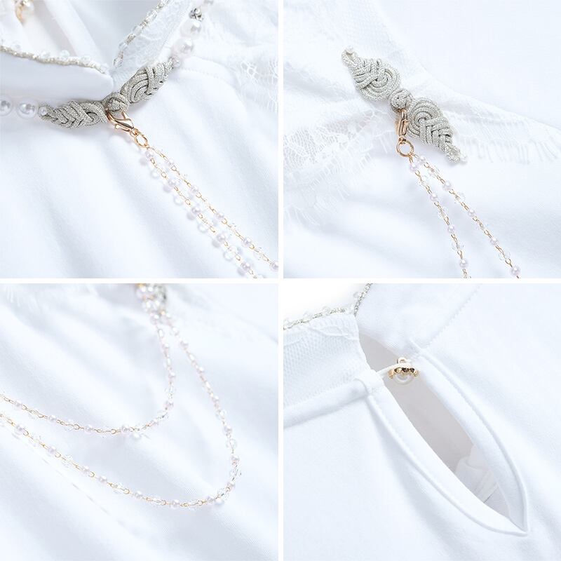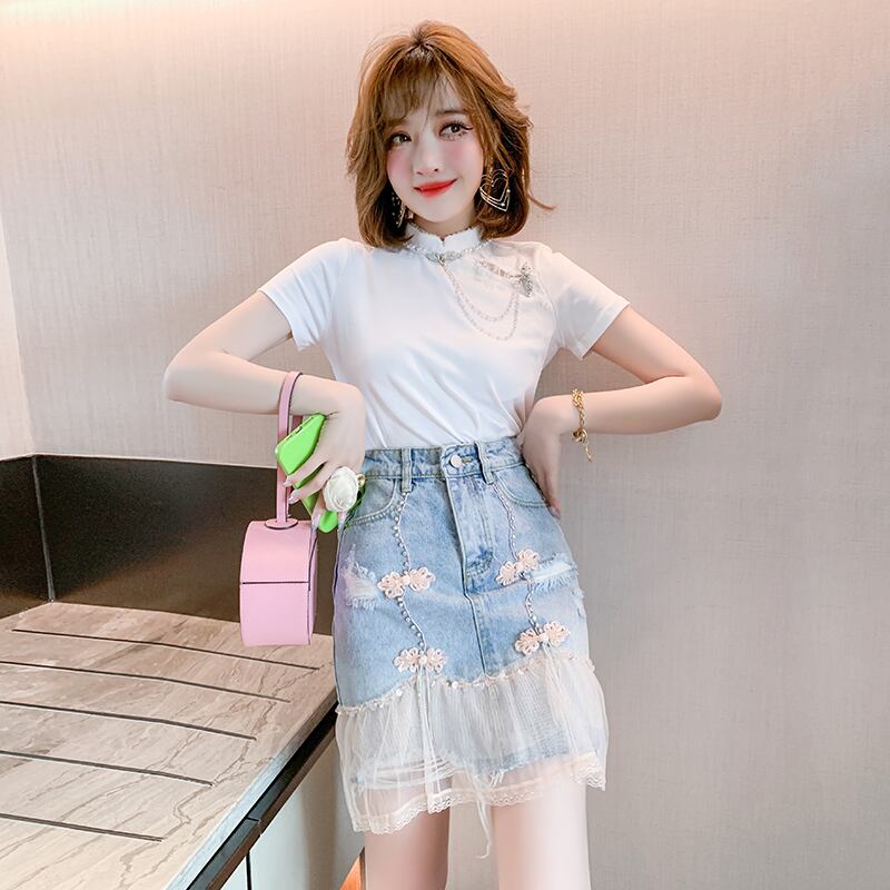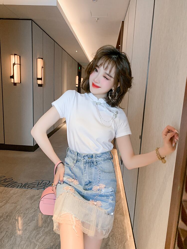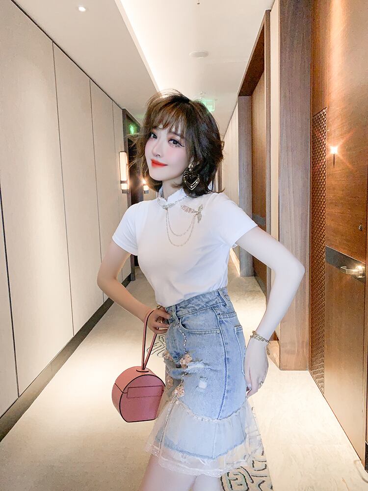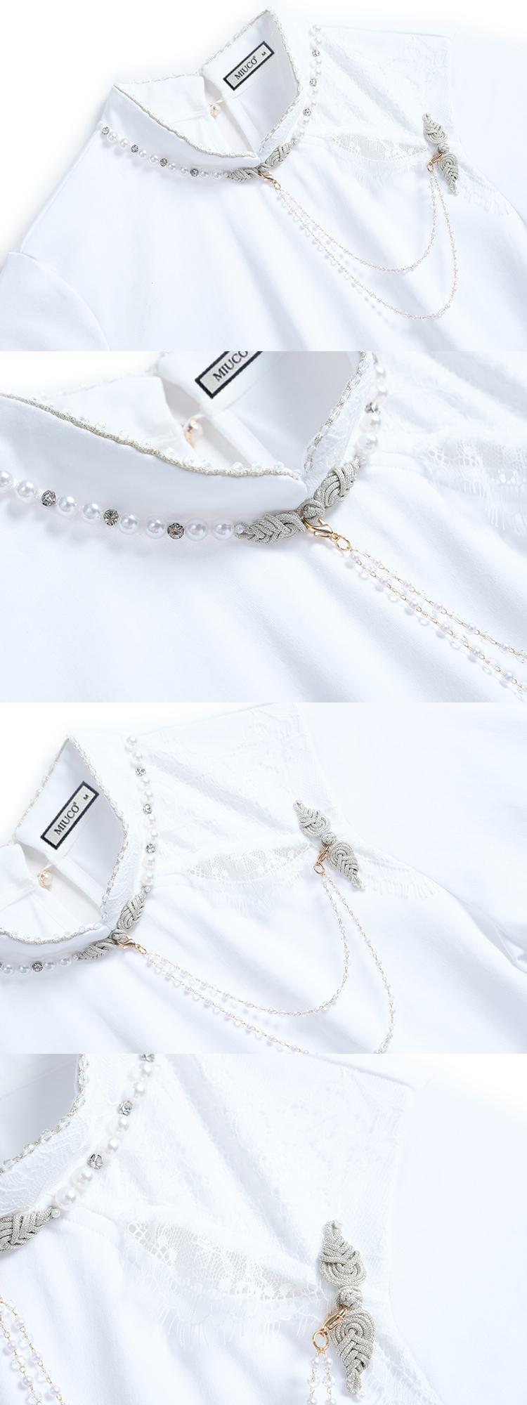 スタイルチェーン スタンドカラーカラーボタンレースソリッド Tシャツ ソリッドカラー ステッチ MIUCO40403866190