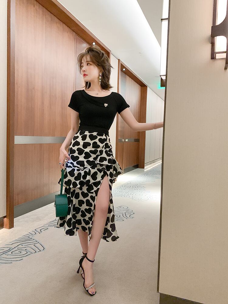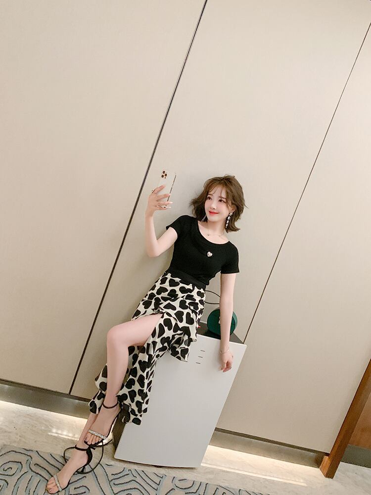 スリムTシャツ ハイウェストスカート サマースタイル 夏物 MIUCO81006403021
