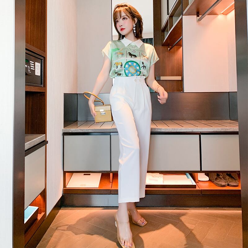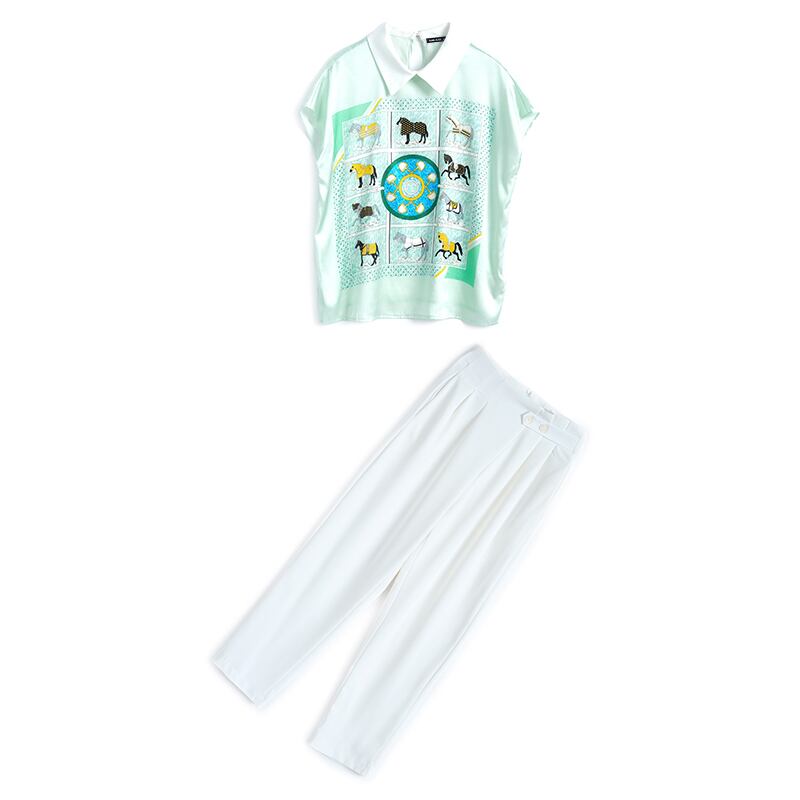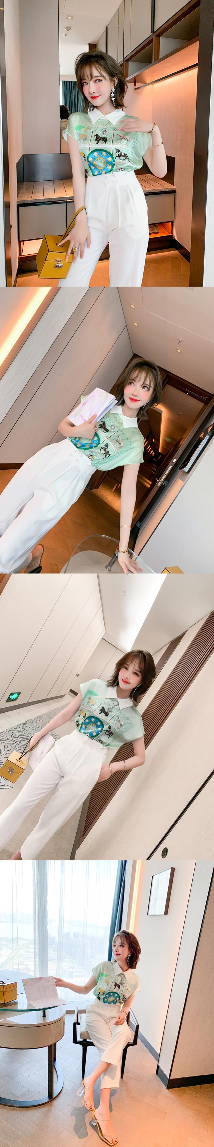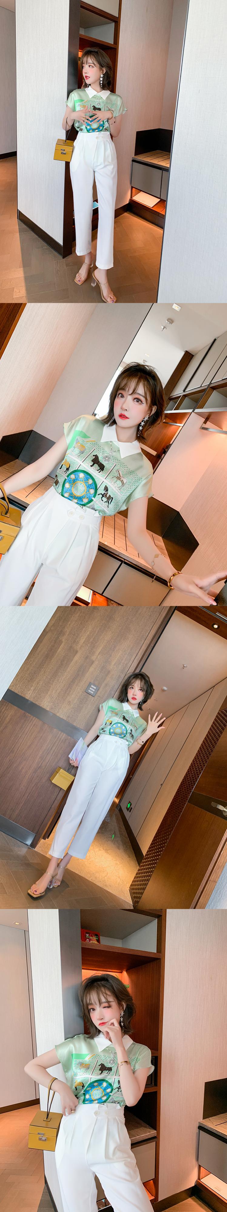 プリント柄カラースリーブシャツ ウェストパンツ MIUCO38138745516