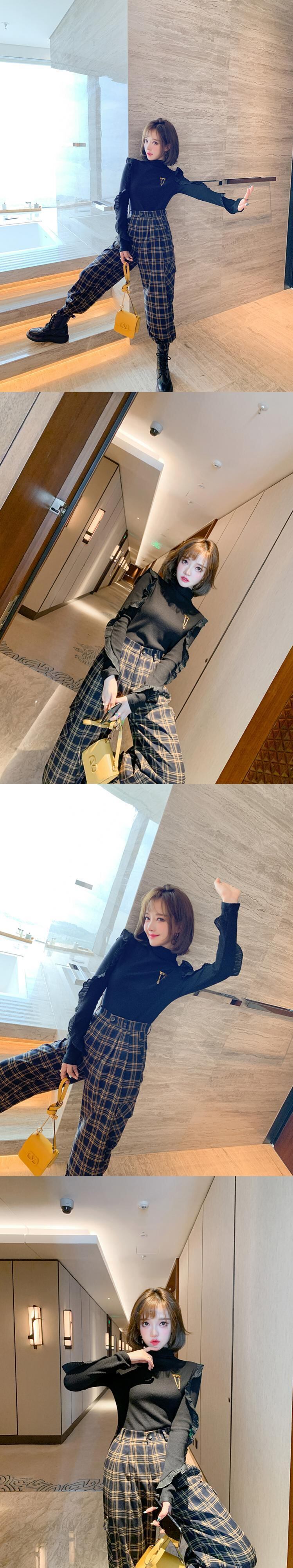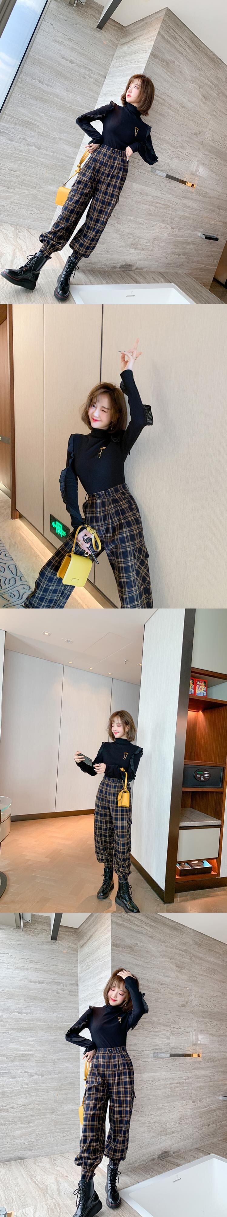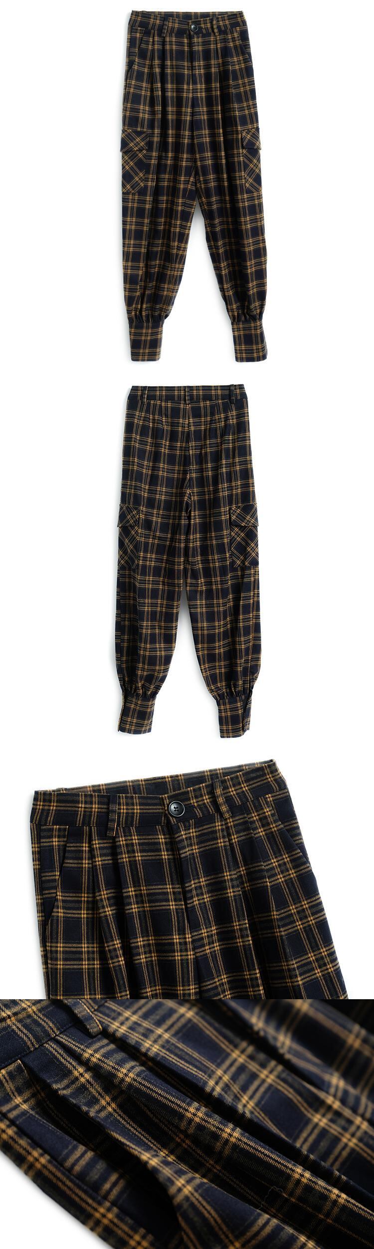 カラー格子柄ルーズ薄手ハイウェストカジュアルパンツ ウィンター 冬物 MIUCO45310897779