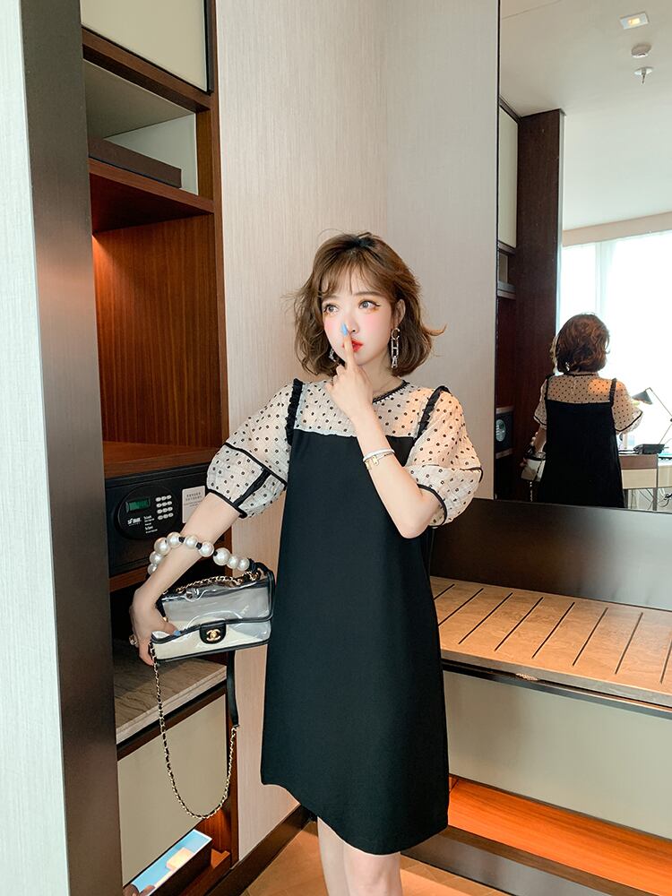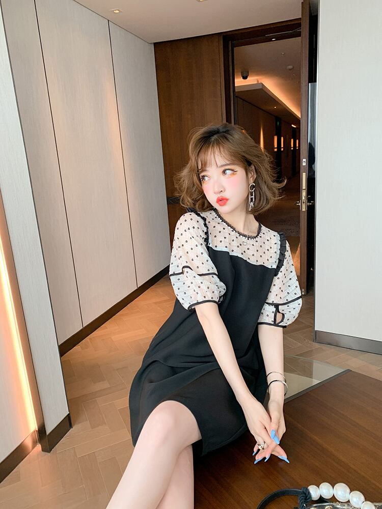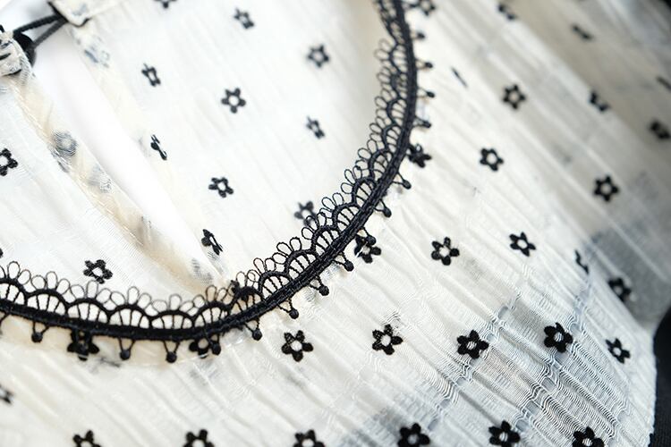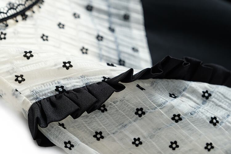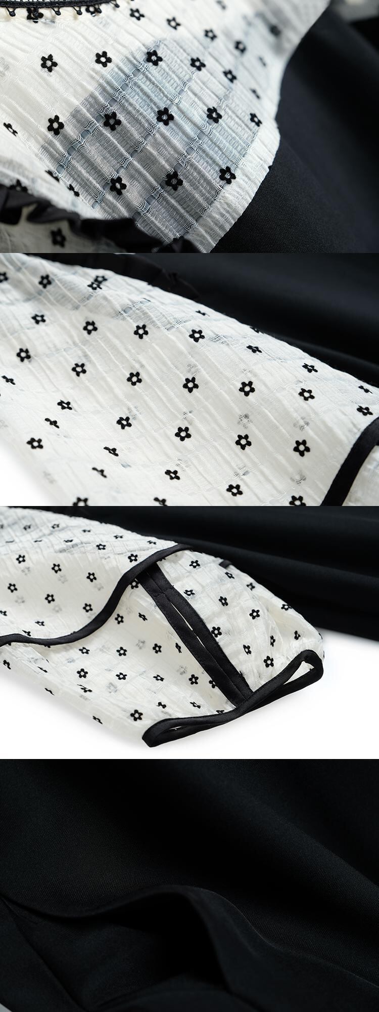 レースラウンドネック刺繍フローラルスリーブドレス オータム 秋物 花柄 Oネック ステッチ MIUCO33743583215