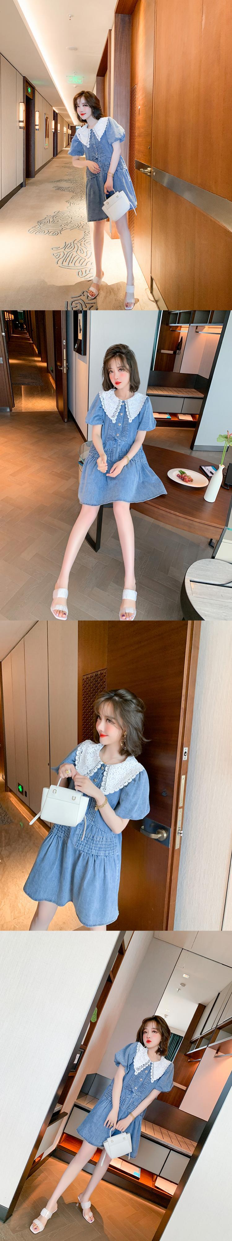 レーススリーブルーズAラインスカート ドレス サマー 夏物 MIUCO29730726208