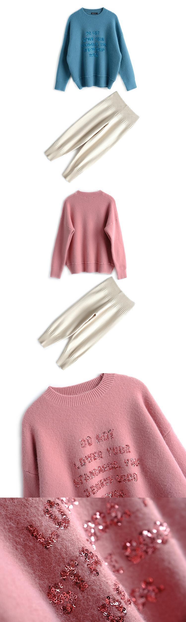 ルーズセーター ウェストニットパンツ セット オータム 秋物 MIUCO21692239370