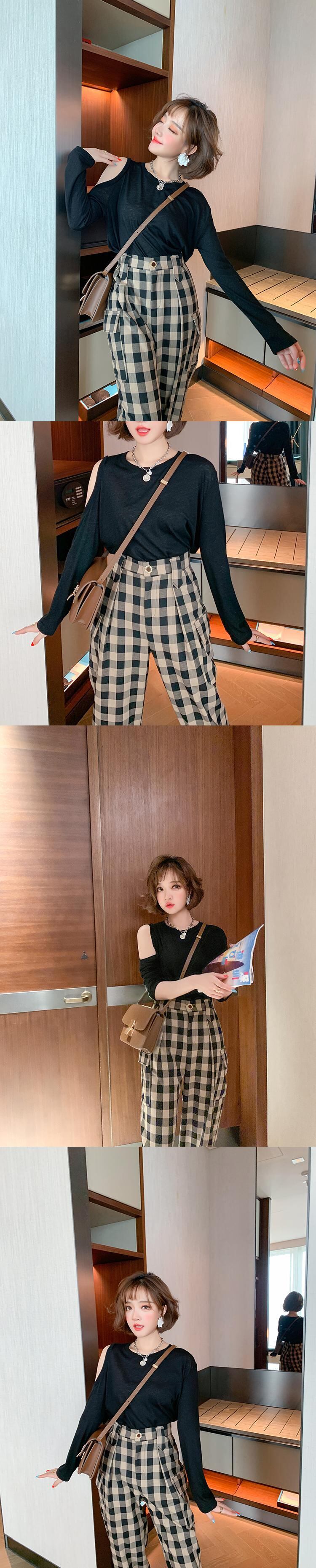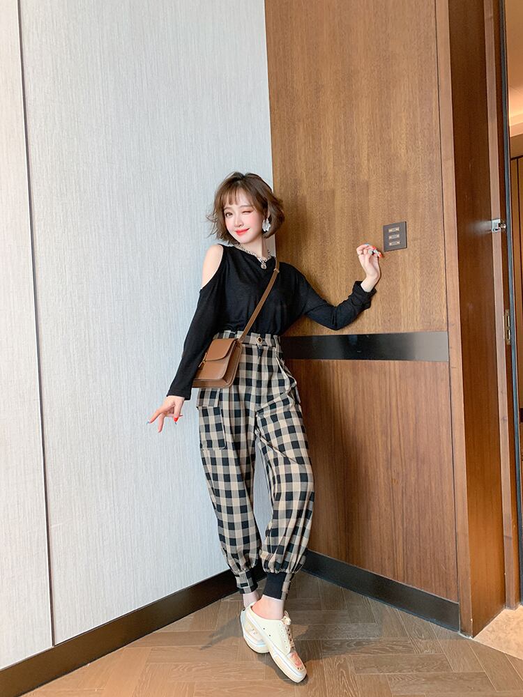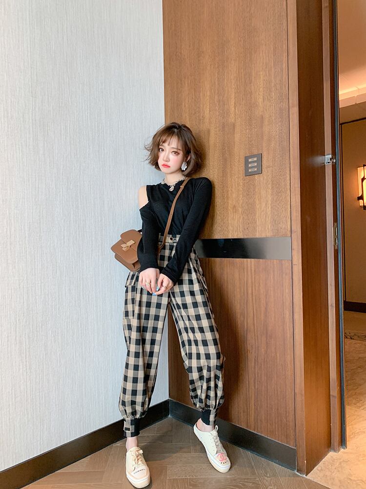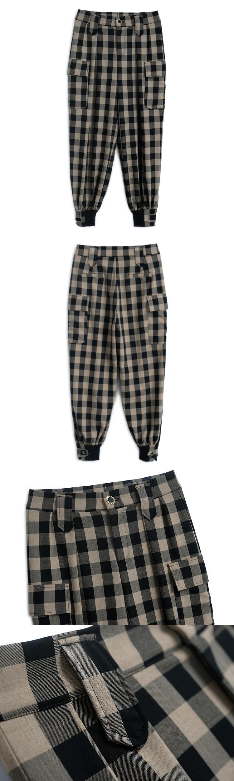 ルーズカラー格子柄パンツ オータム 秋物 MIUCO23721255554