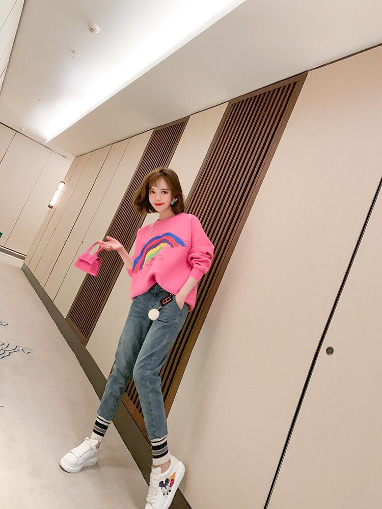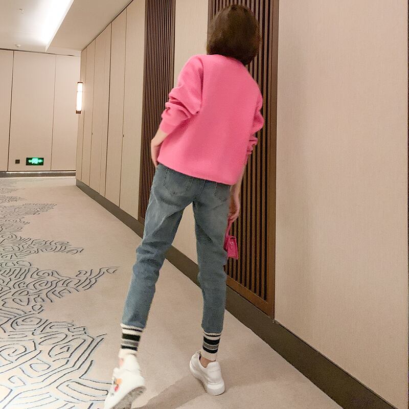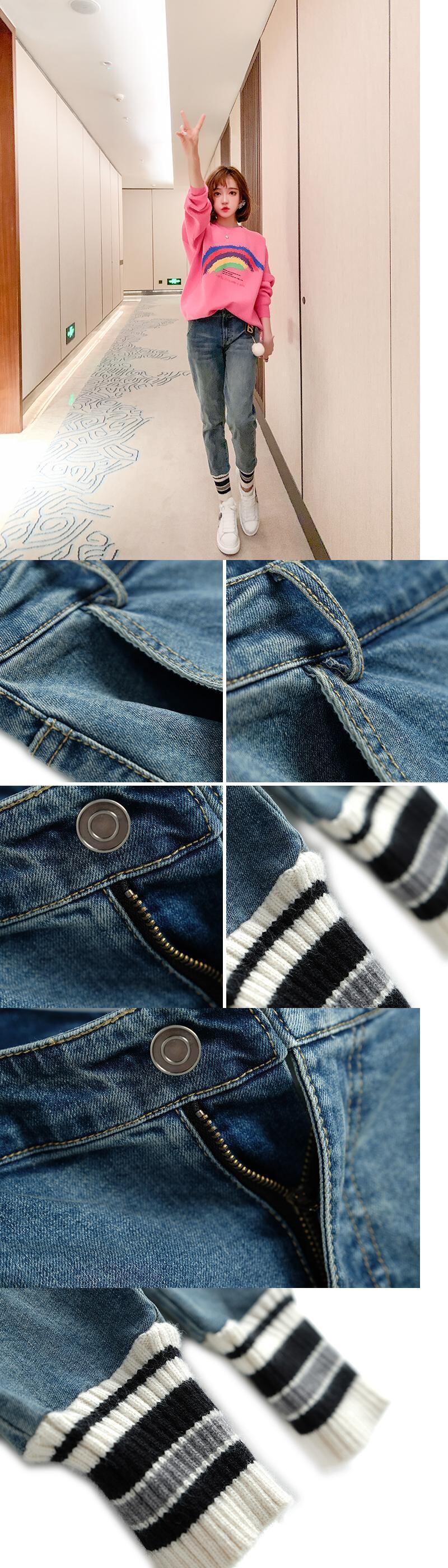 ハイウェストカラーカジュアルジーンズ ウィンター 冬物 ステッチ MIUCO63707963718