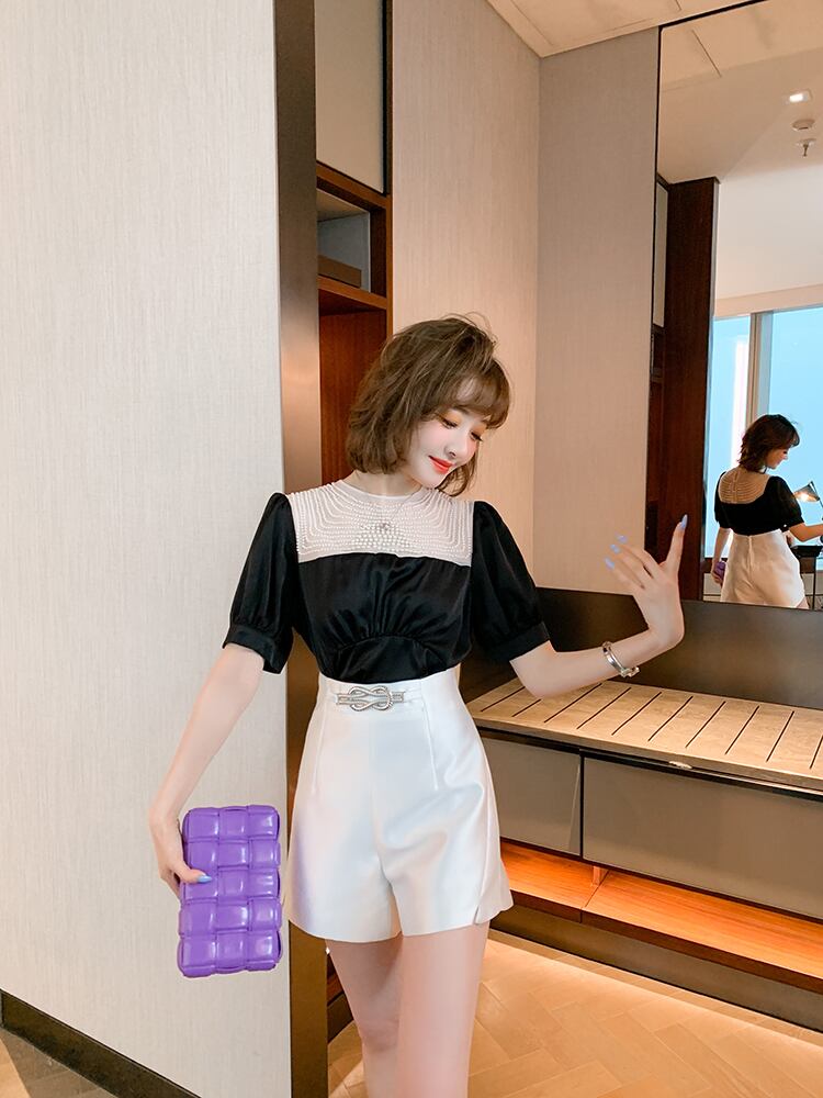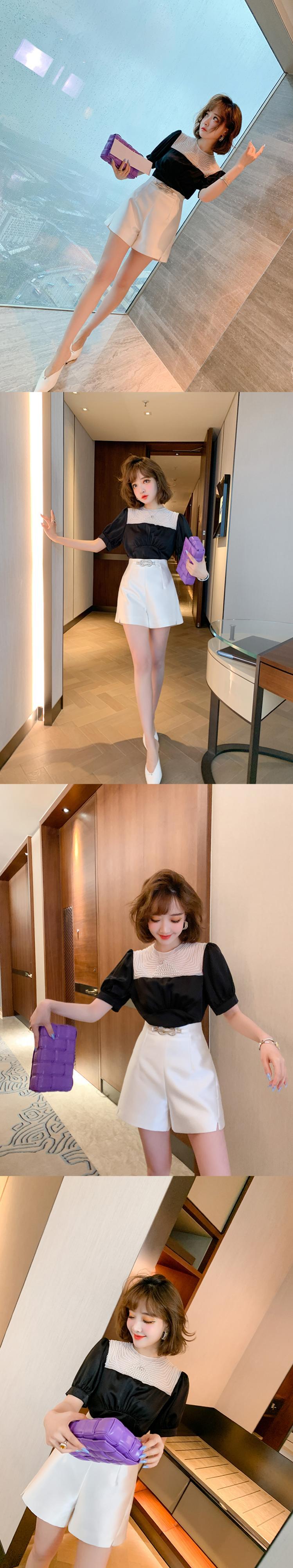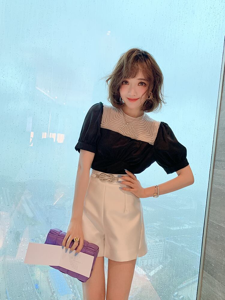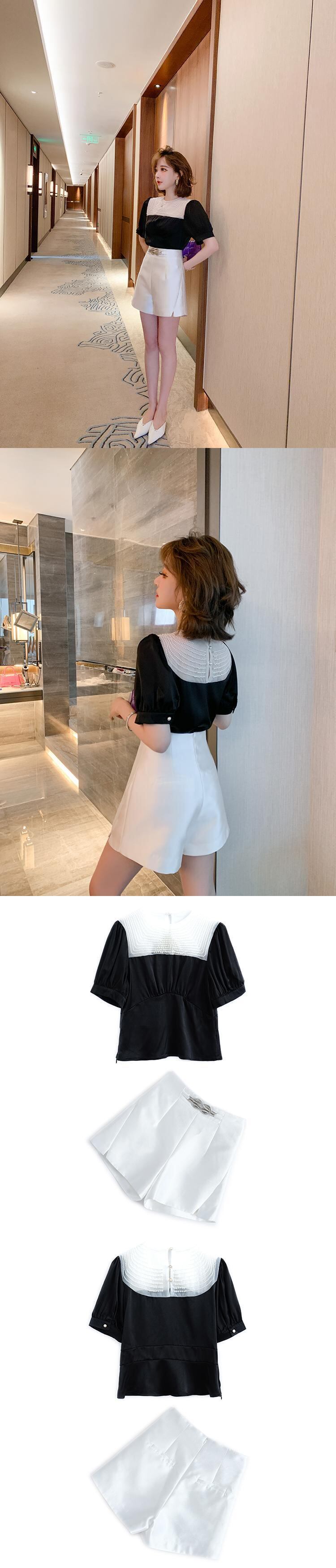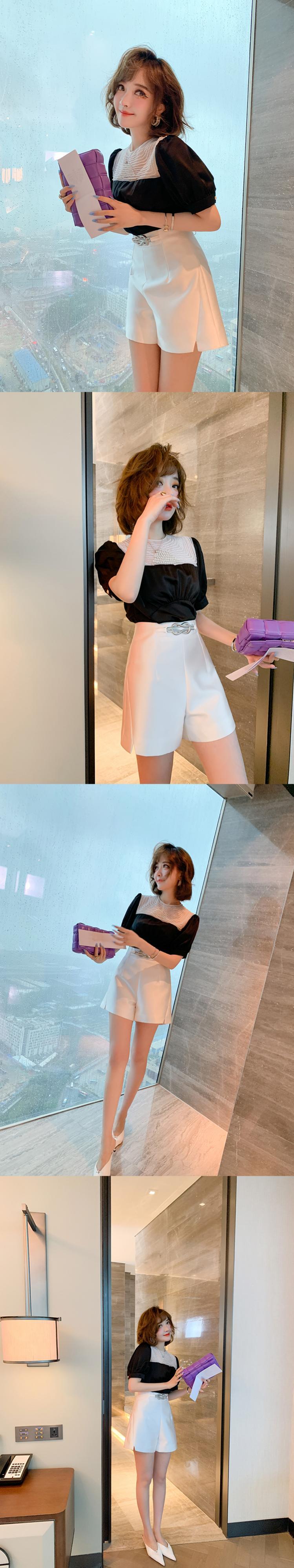スリーブトップス ハイウェストウェストAラインショーツ オータム 秋物 ブルマー ステッチ MIUCO12853232398