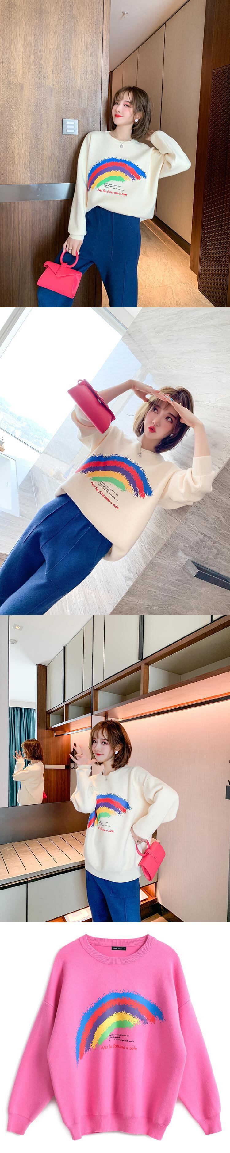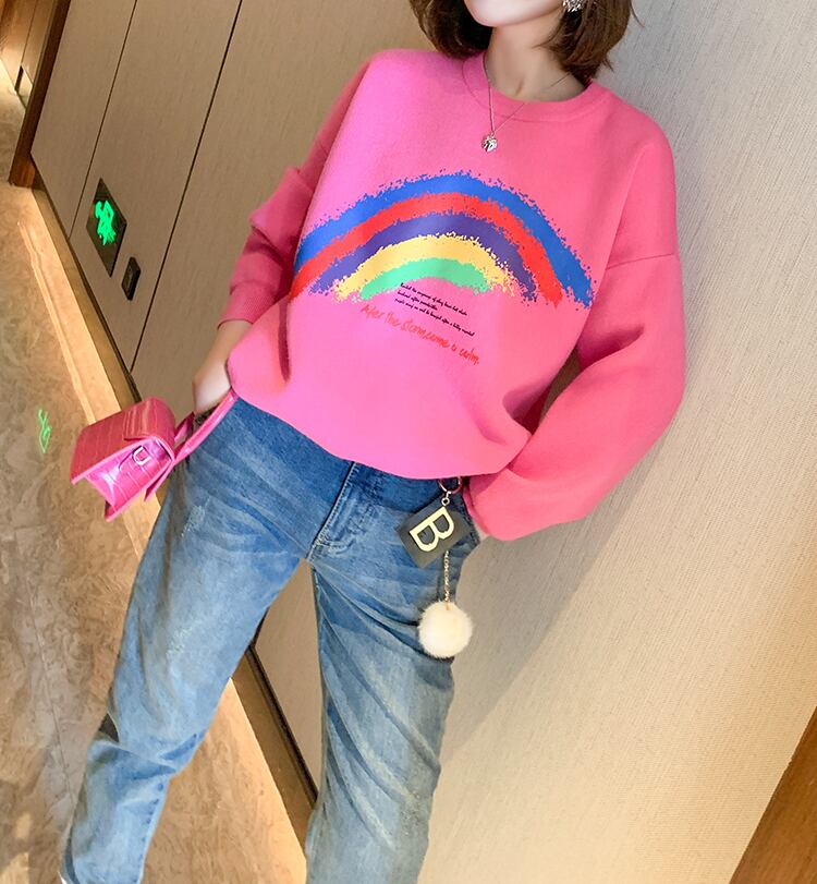 プリント柄ラウンドネックルーズニットセーター ウィンター 冬物 Oネック ステッチ MIUCO17903773420
