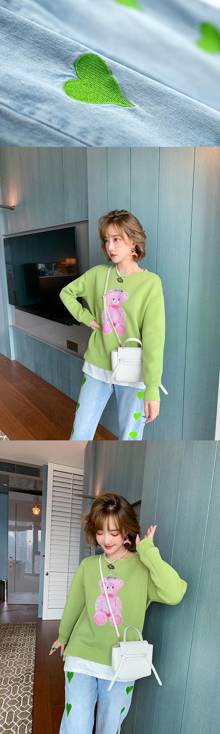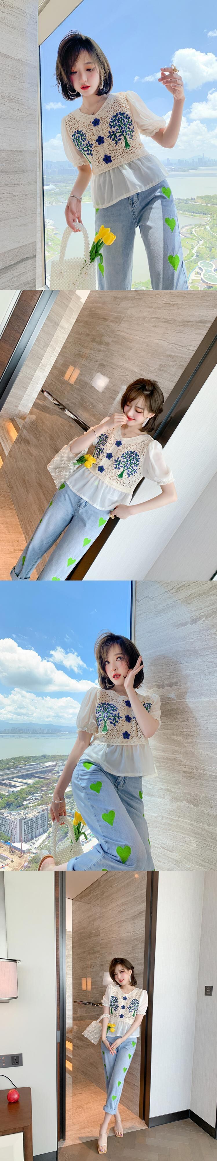 薄手ジーンズ レッド 刺繍 大人ガーリー スウィート キュート カジュアル MIUCO16477279929