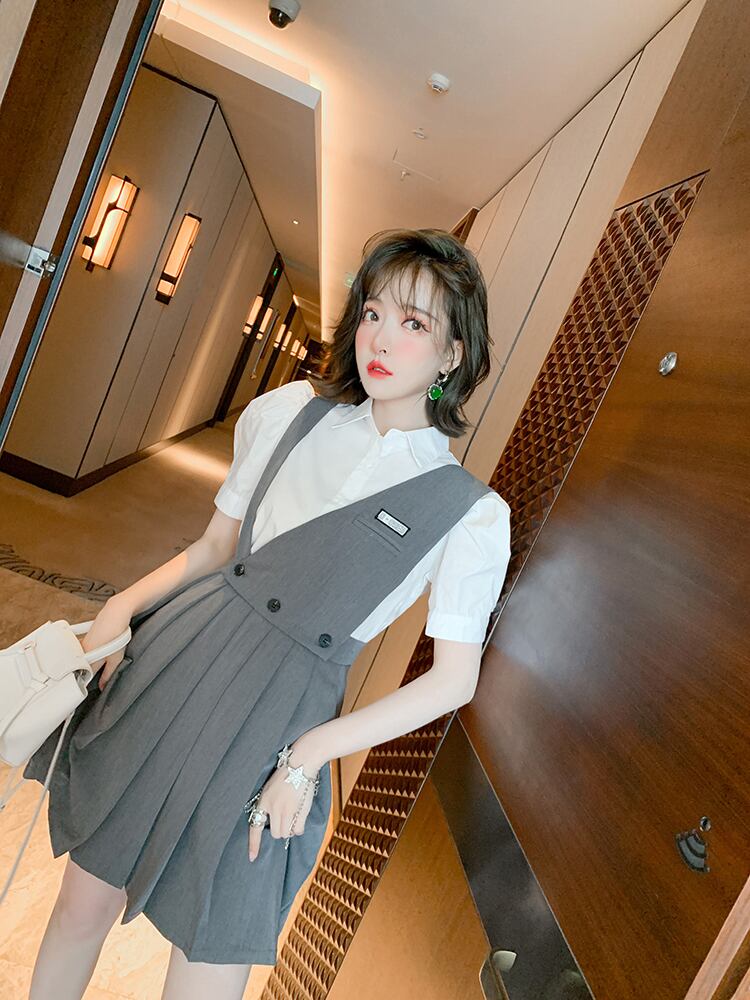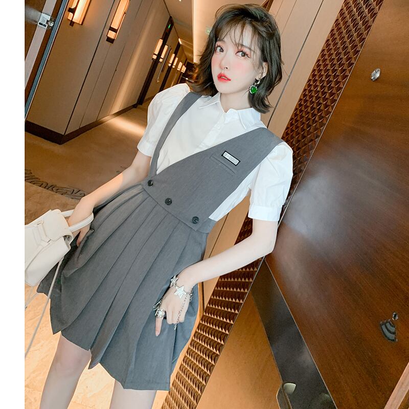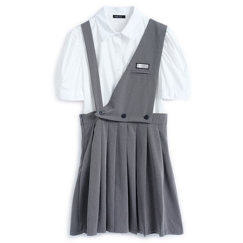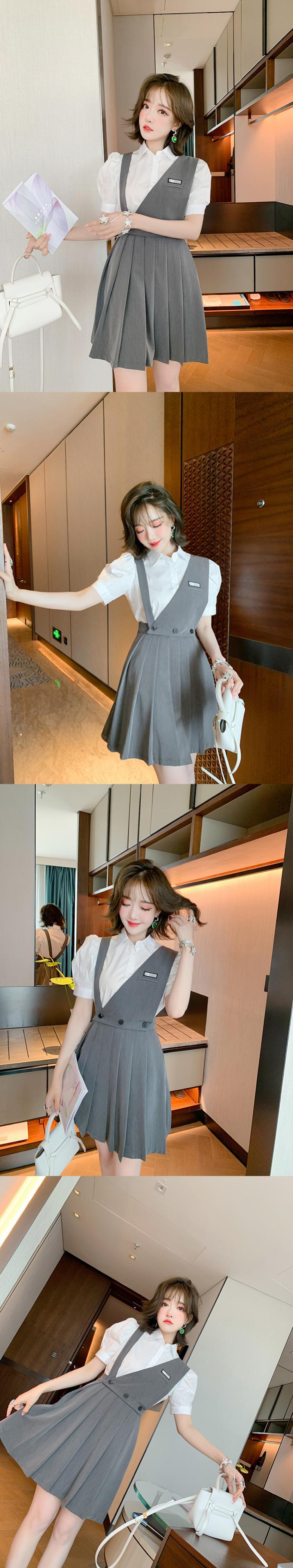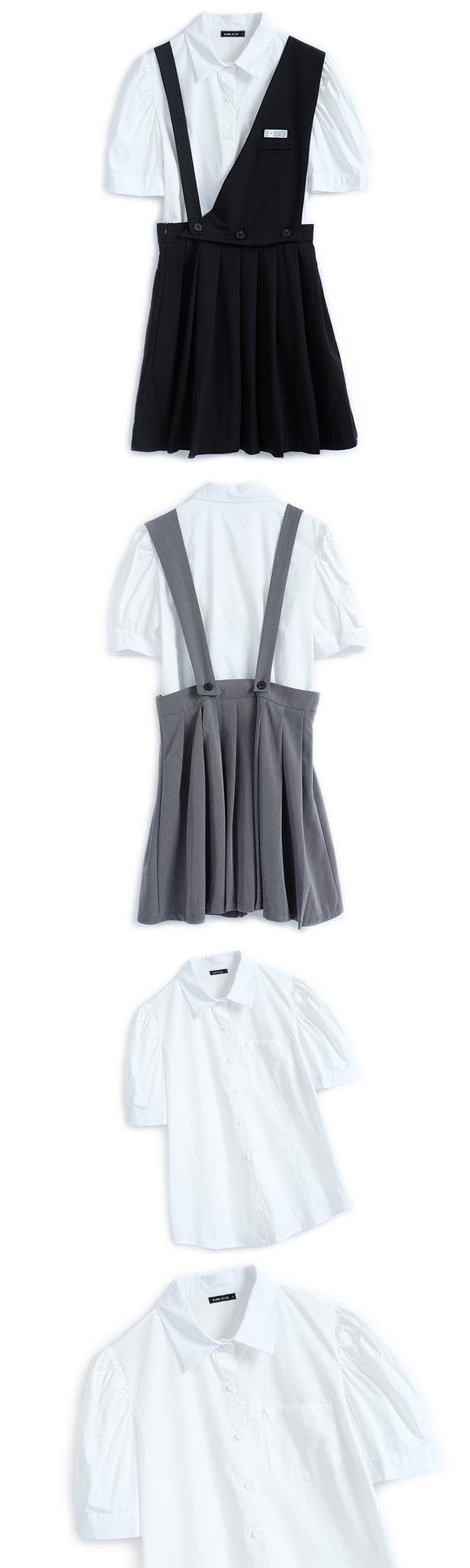スリーブカラーソリッド シャツ プリーツスカート ソリッドカラー MIUCO68292742938