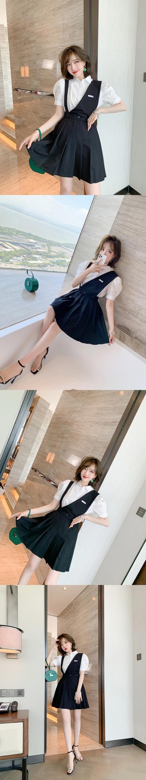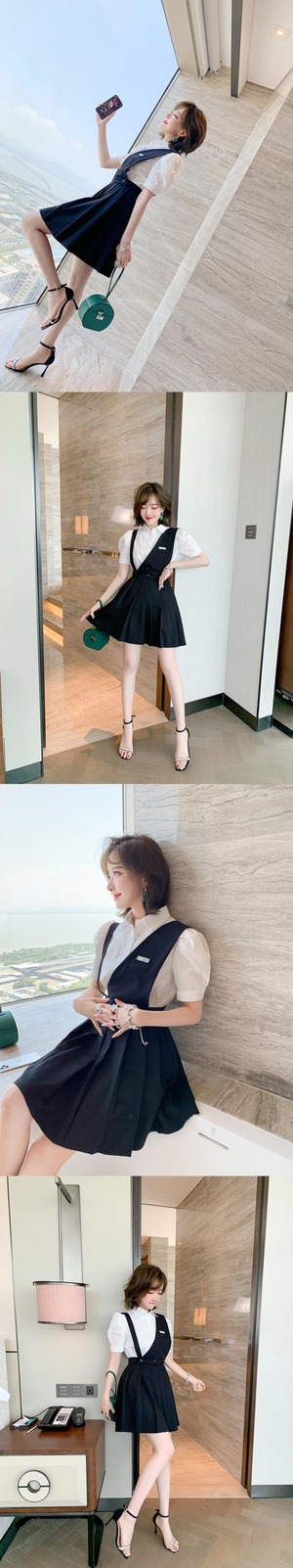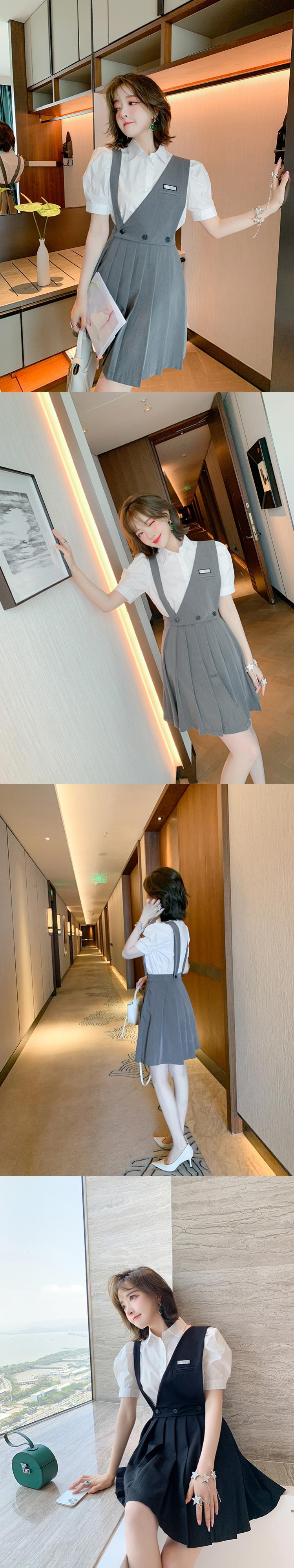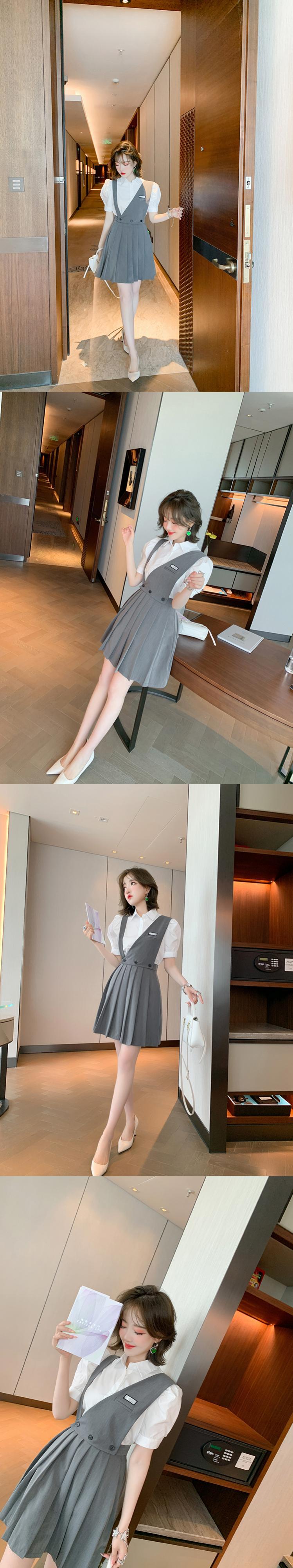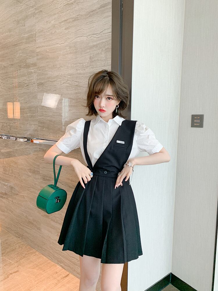 スリーブカラーソリッド シャツ プリーツスカート ソリッドカラー MIUCO68292742938