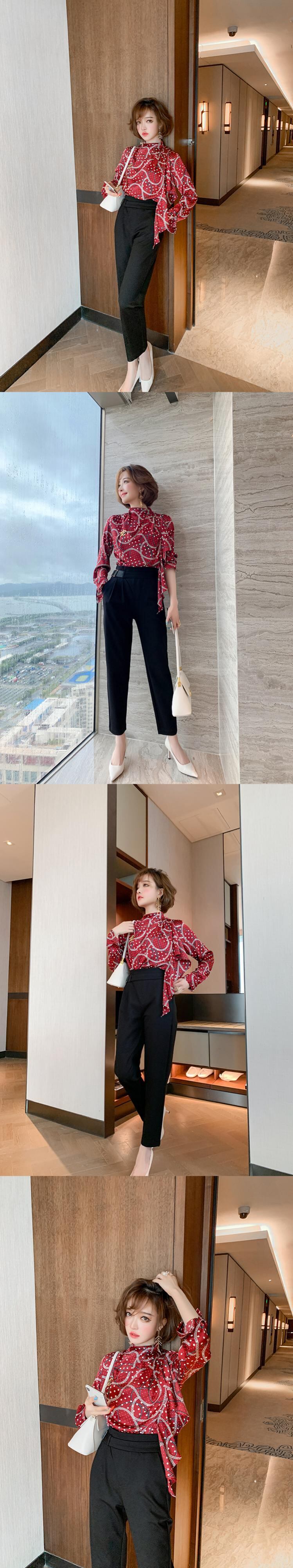 ハイウェストウェストプリーツソリッド カラーパンツ オータム 秋物 ソリッドカラー MIUCO92188495540
