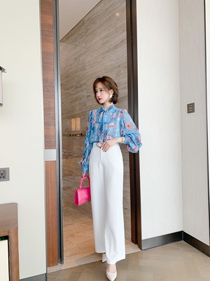 ハイウェストウェスト薄手ソリッド カラールーズパンツ スプリング 春物 ソリッドカラー MIUCO6365875006