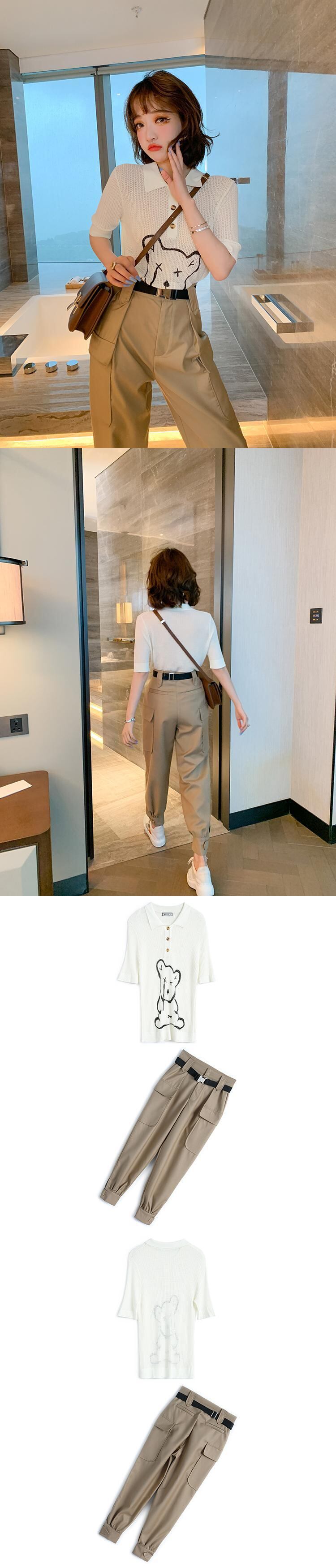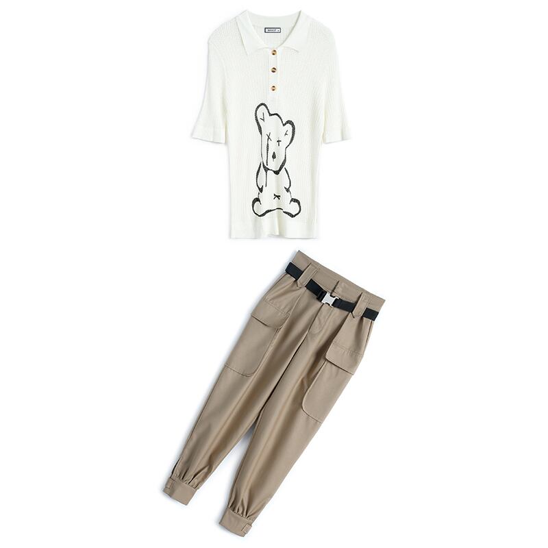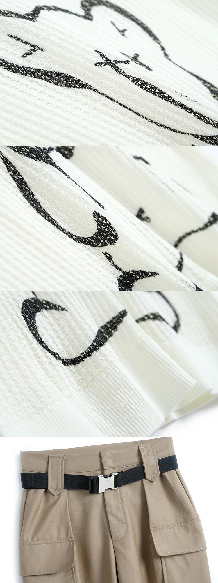 プリントニットTシャツ ウェストギャザーオーバーオール セット オータム 秋物 MIUCO419376218