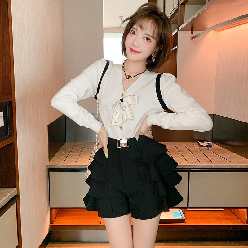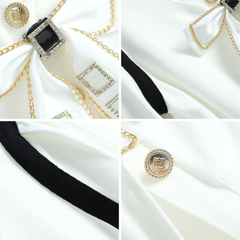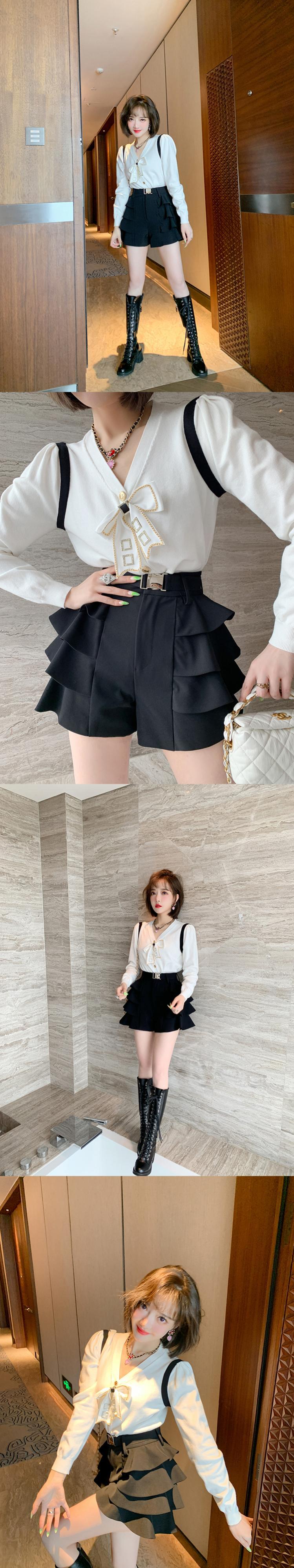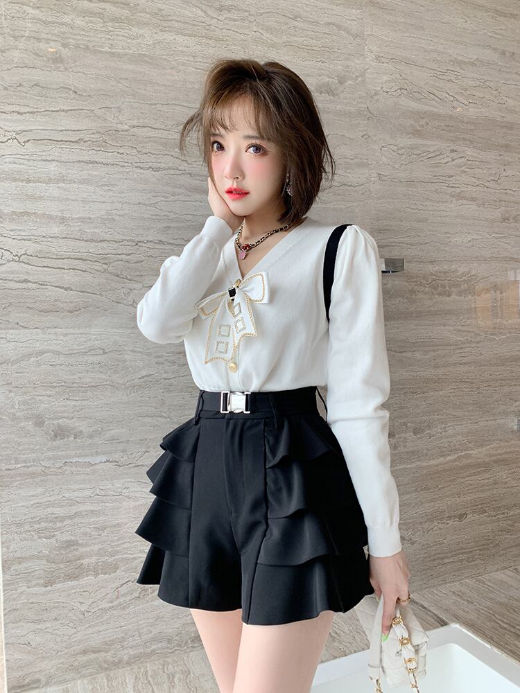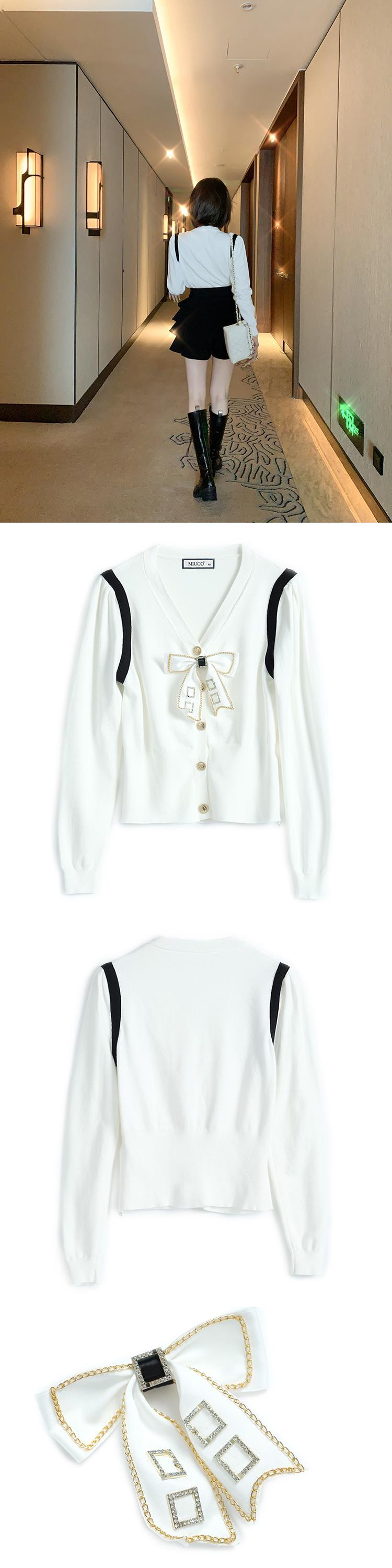 チェーン Vネックニットカーディガン リボン 大人ガーリー スウィート キュート カジュアル MIUCO40496544113