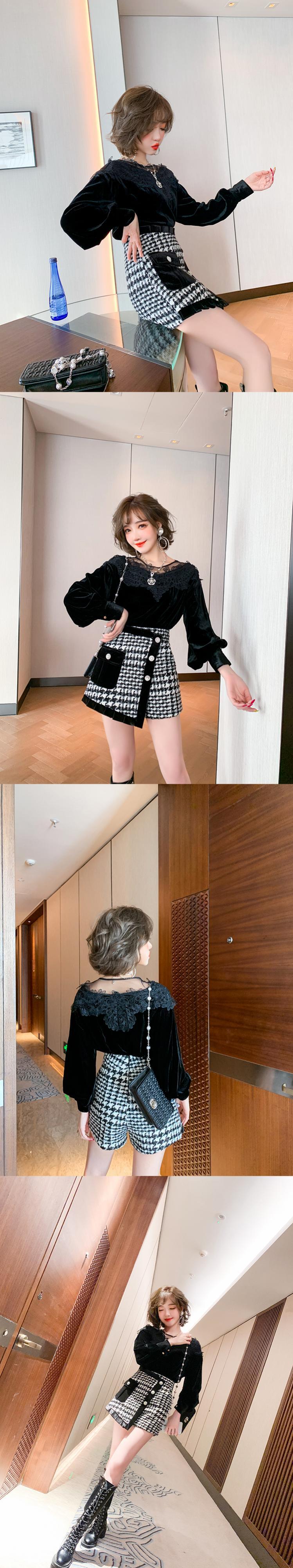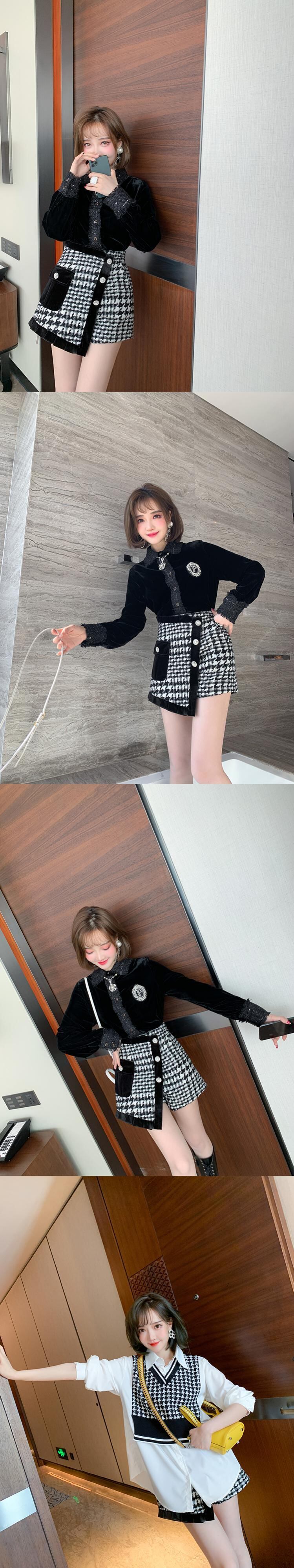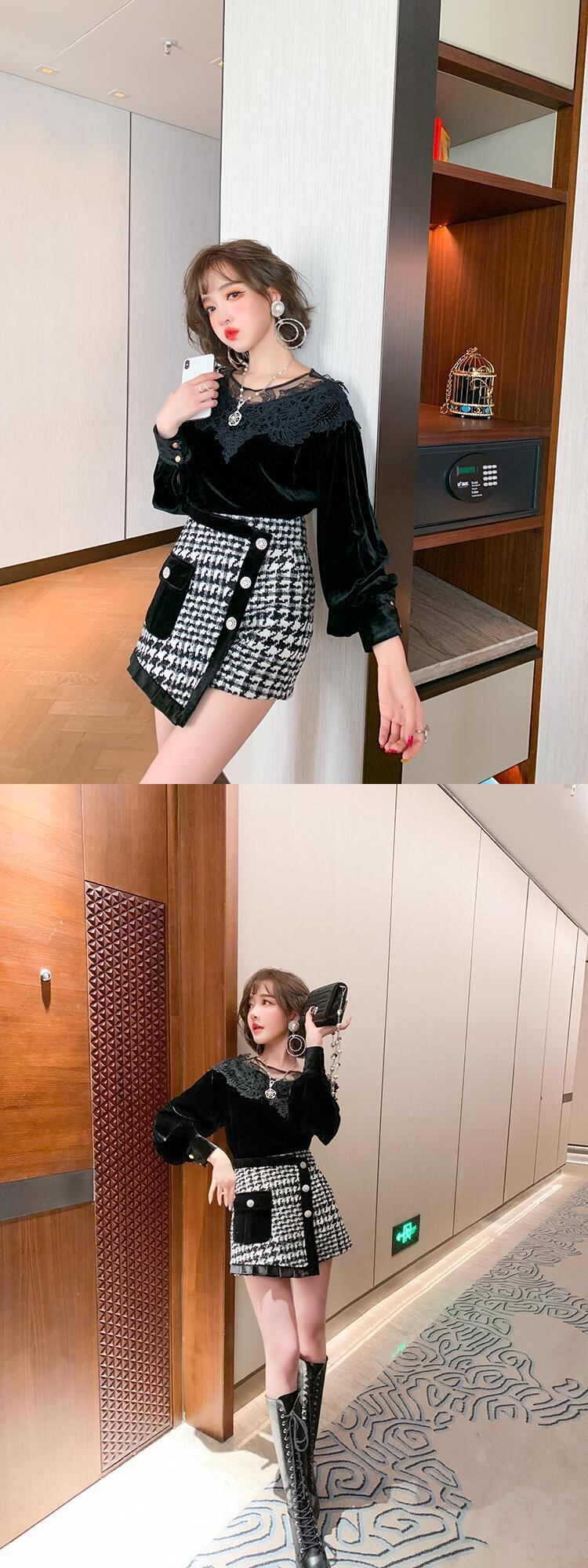 ツィードベルベットレースボタンウィンター 冬物 ステッチ MIUCO94402392901