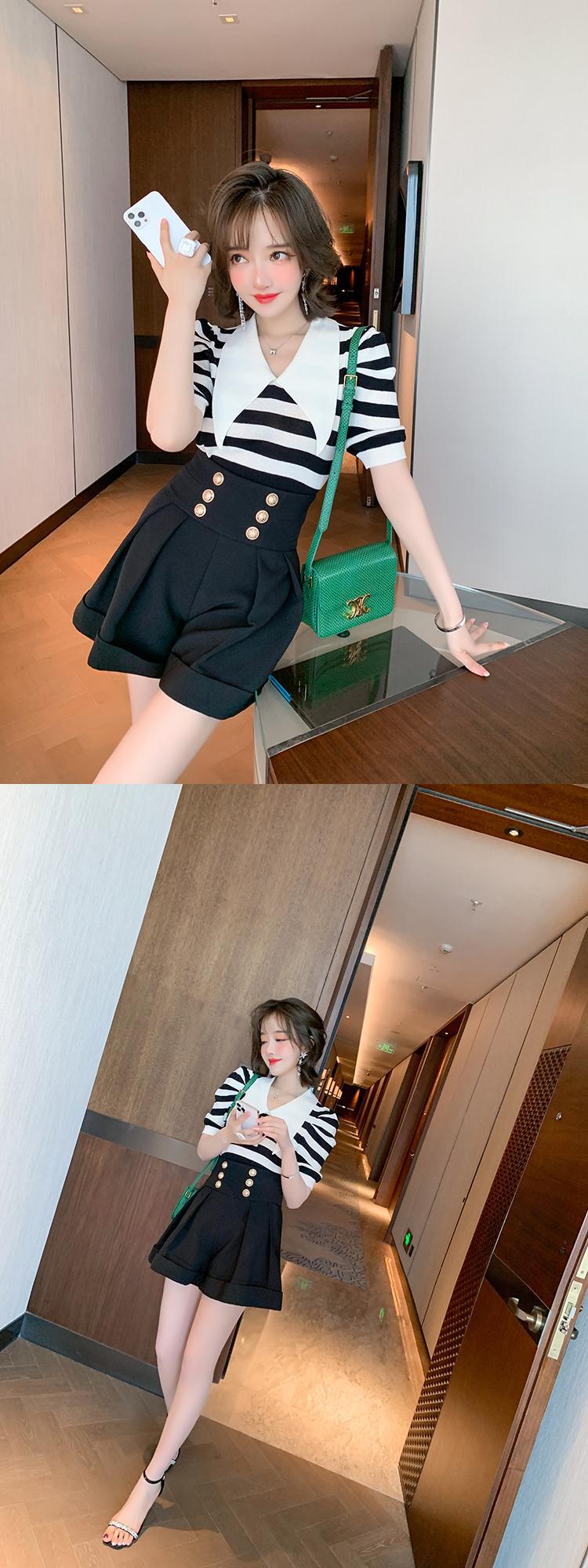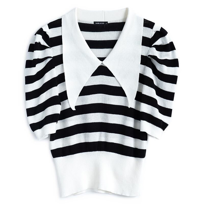 カラースタンダードスリーブストライプニットTシャツ トップス サマースタイル レトロ 夏物 MIUCO48250862391