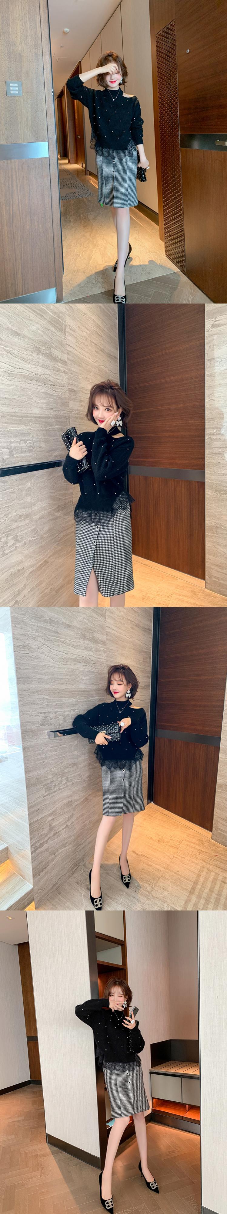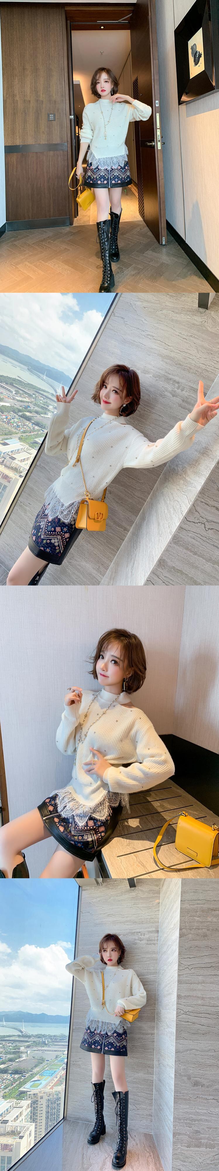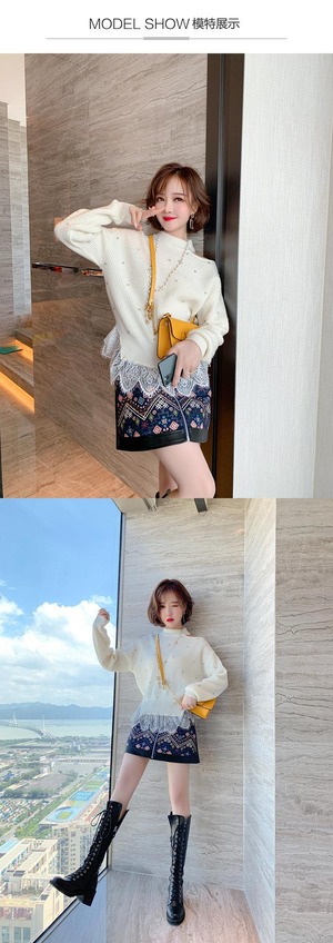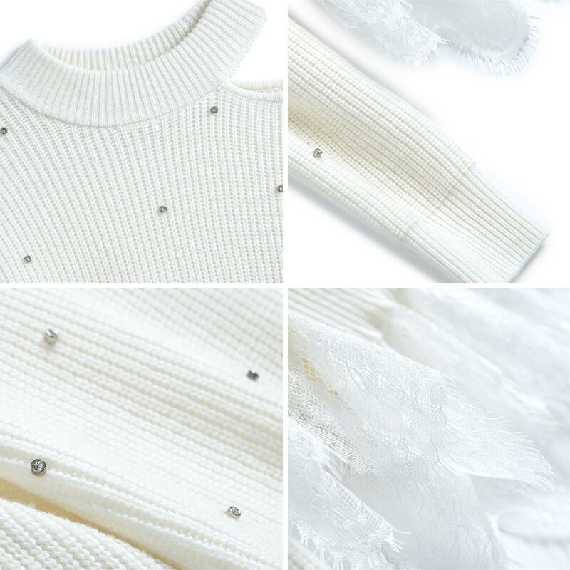 カラーレースニットセーター オータムウィンター 秋物 冬物 ステッチ MIUCO77591298536