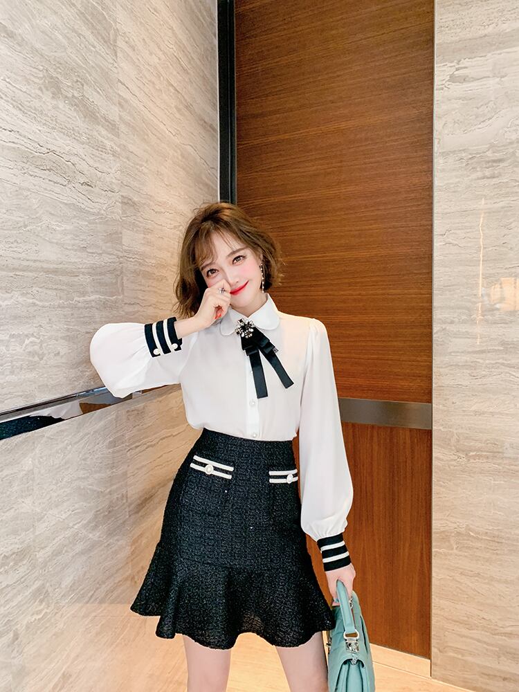 カラースリーブシャツ ランタンスリーブ リボン ヨーロピアン MIUCO5232809005