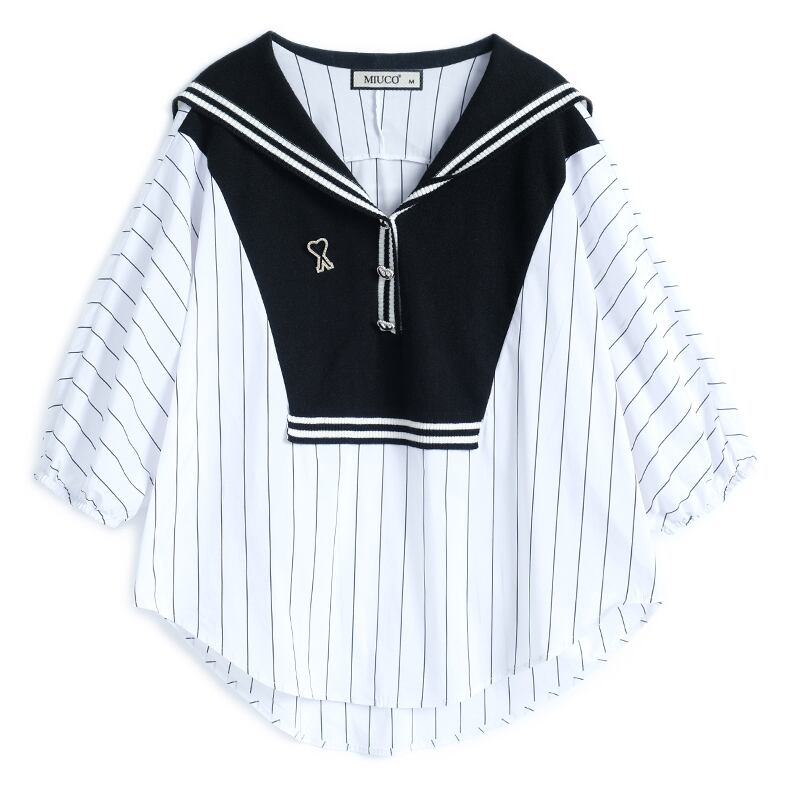 カラーニットストライプシャツ トップス オータム 秋物 ステッチ MIUCO29067158419